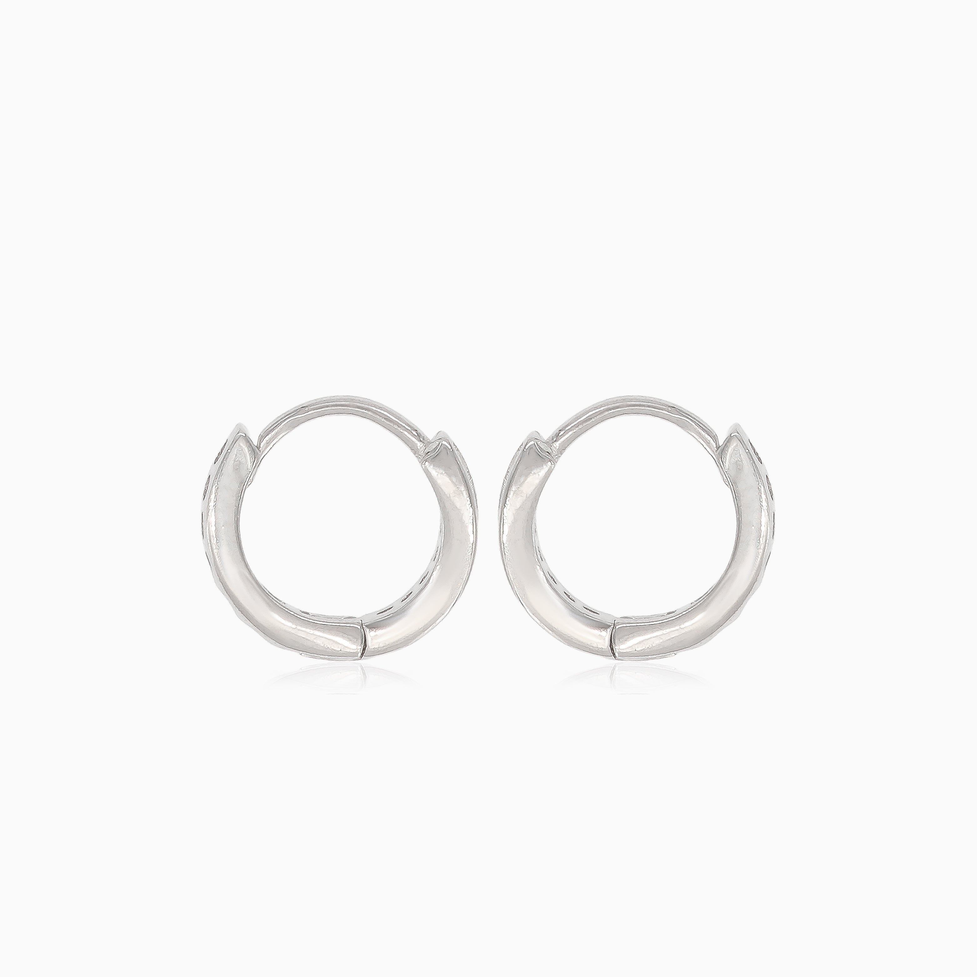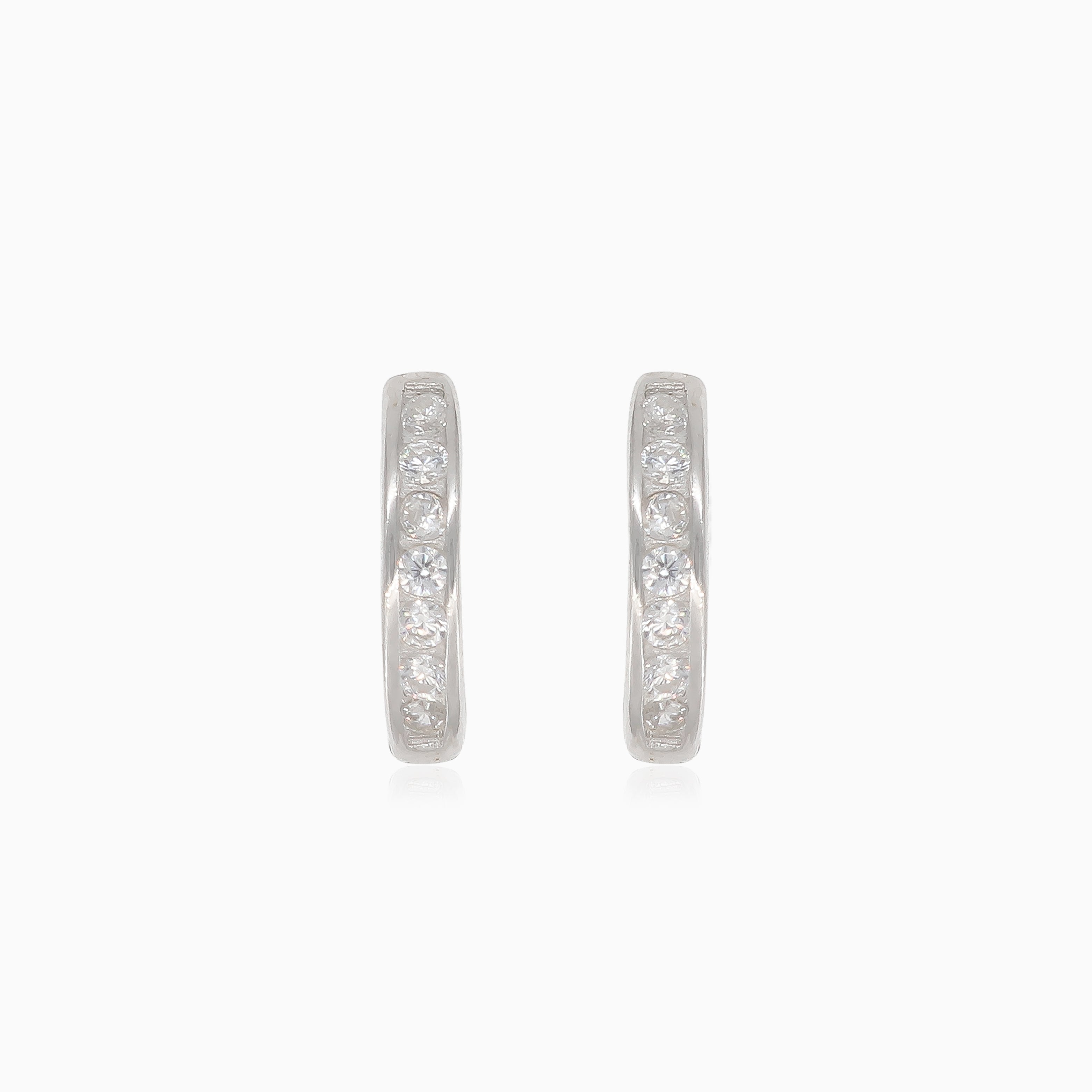 Verleihen Sie Ihrem Outfit einen Hauch von Eleganz mit diesen charmanten silbernen Ohrringen, die kleine Kreise mit funkelnden Zirkoniasteinen zeigen und mit einem praktischen Huggie-Verschluss für einfaches Tragen ausgestattet sind.