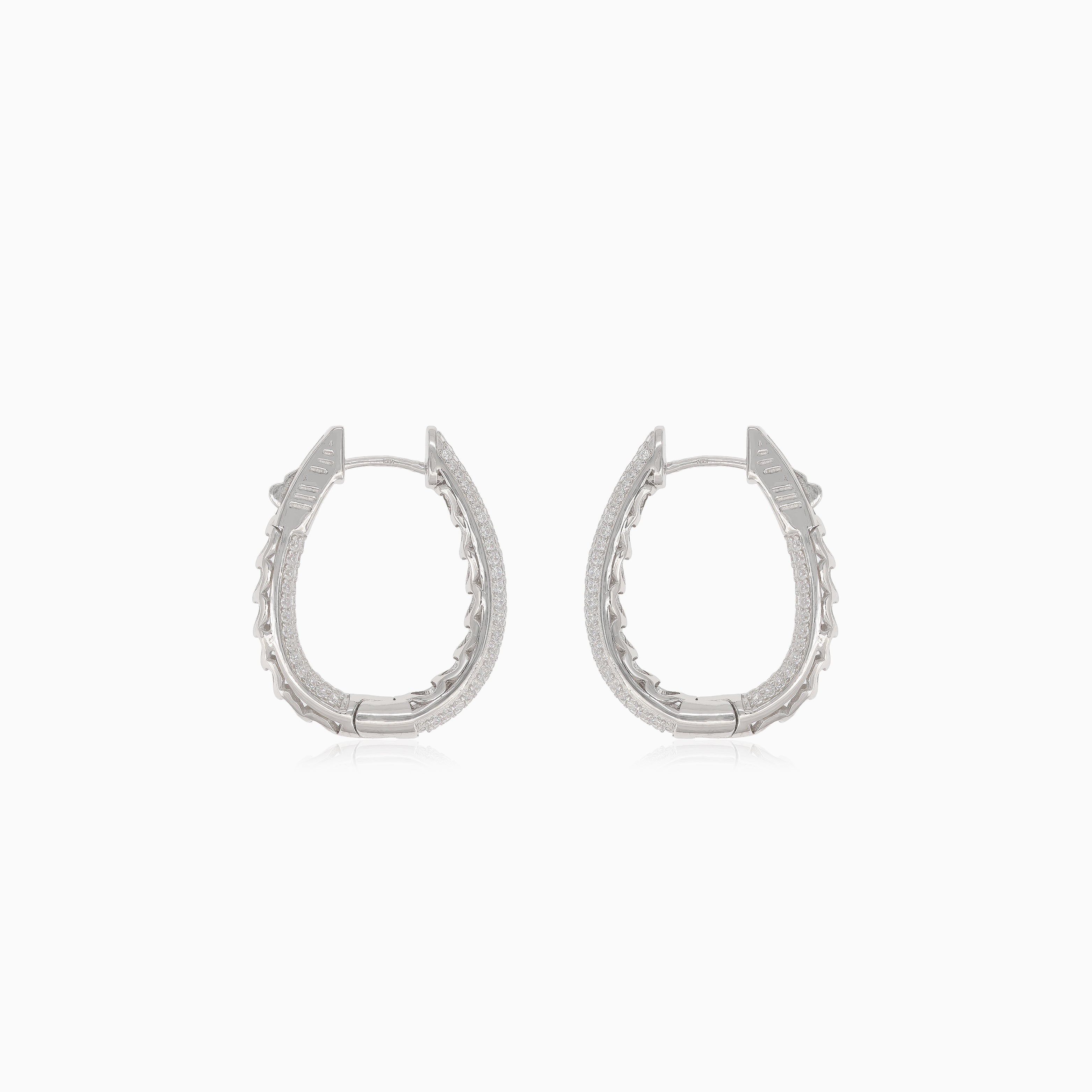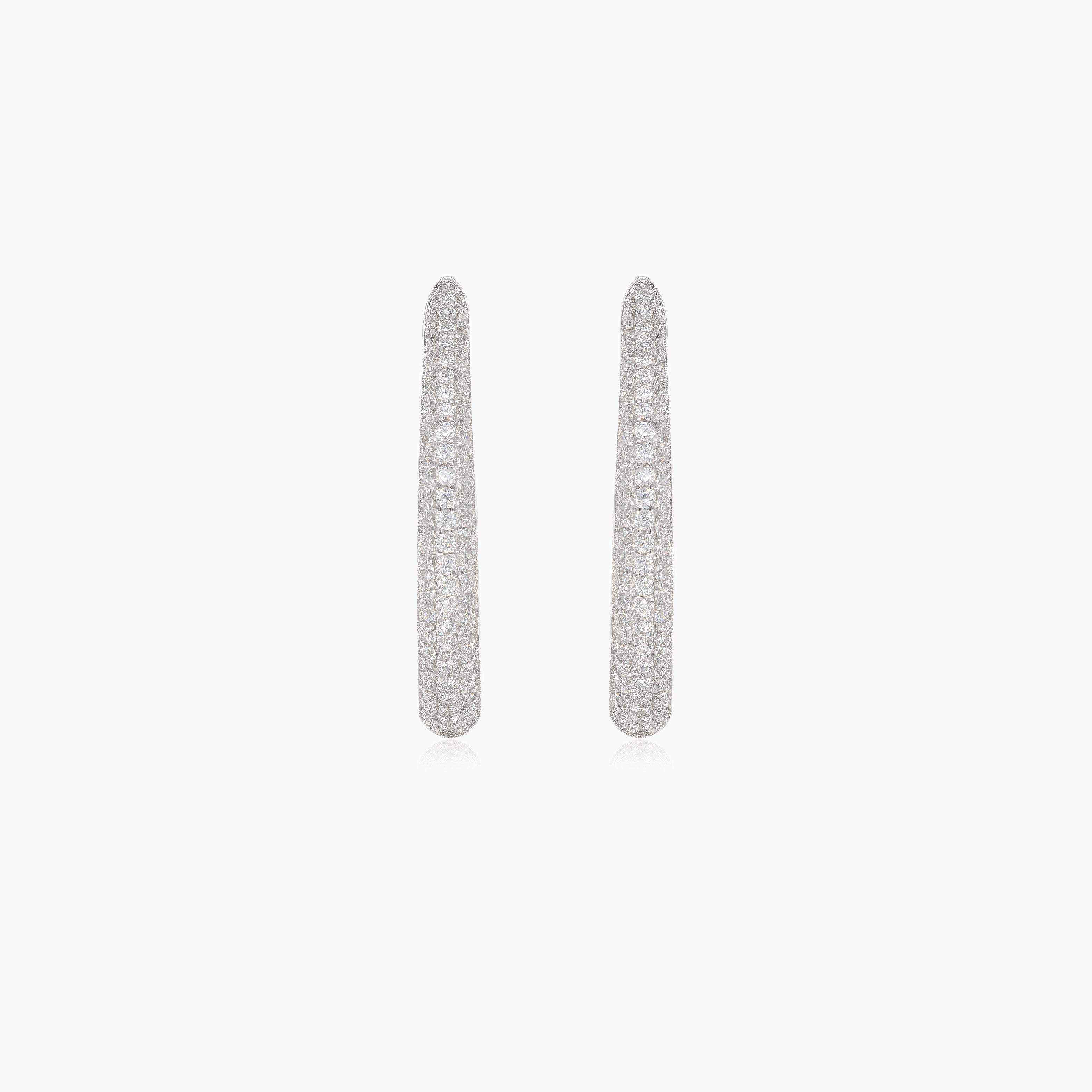 Diese faszinierenden silbernen Ohrringe zeigen Kreise, die innen und außen mit Zirkonia besetzt sind, und schaffen so einen funkelnden und eleganten Look, der jedes Outfit mühelos aufwertet.