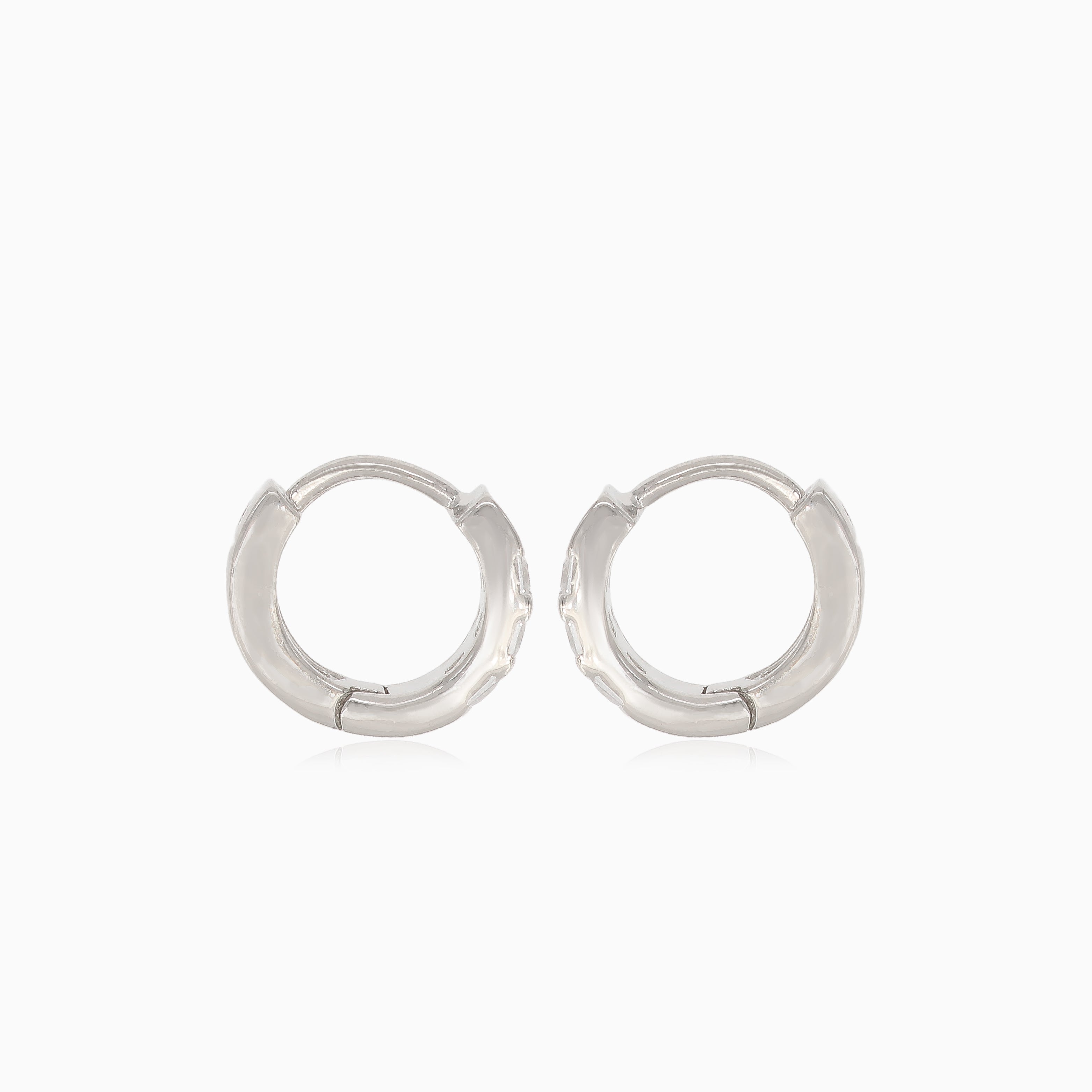 Setzen Sie ein Statement mit diesen eleganten silbernen Ohrringen, die kreisförmige Designs mit rechteckigen Zirkonia-Steinen kombinieren und durch einen praktischen Huggie-Verschluss gesichert sind.