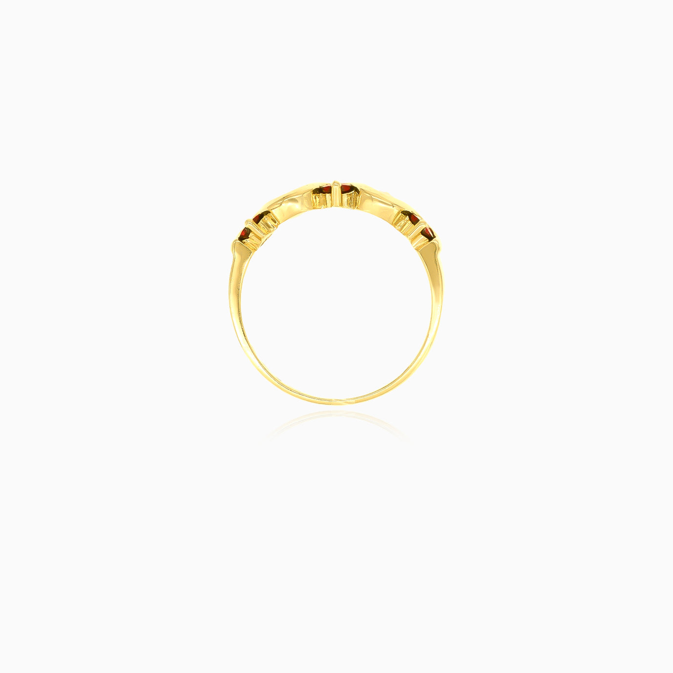 Dieser elegante Damenring ist aus 14 Karat Gelbgold gefertigt und zeigt eine beeindruckende Kombination aus runden feinen Treppenschliff-Granaten und Zirkonia-Steinen. Die Krappenfassung verstärkt die Brillanz der Edelsteine und macht ihn zu einem perfekten Schmuckstück für diejenigen, die ein dezentes, aber stilvolles Design schätzen.