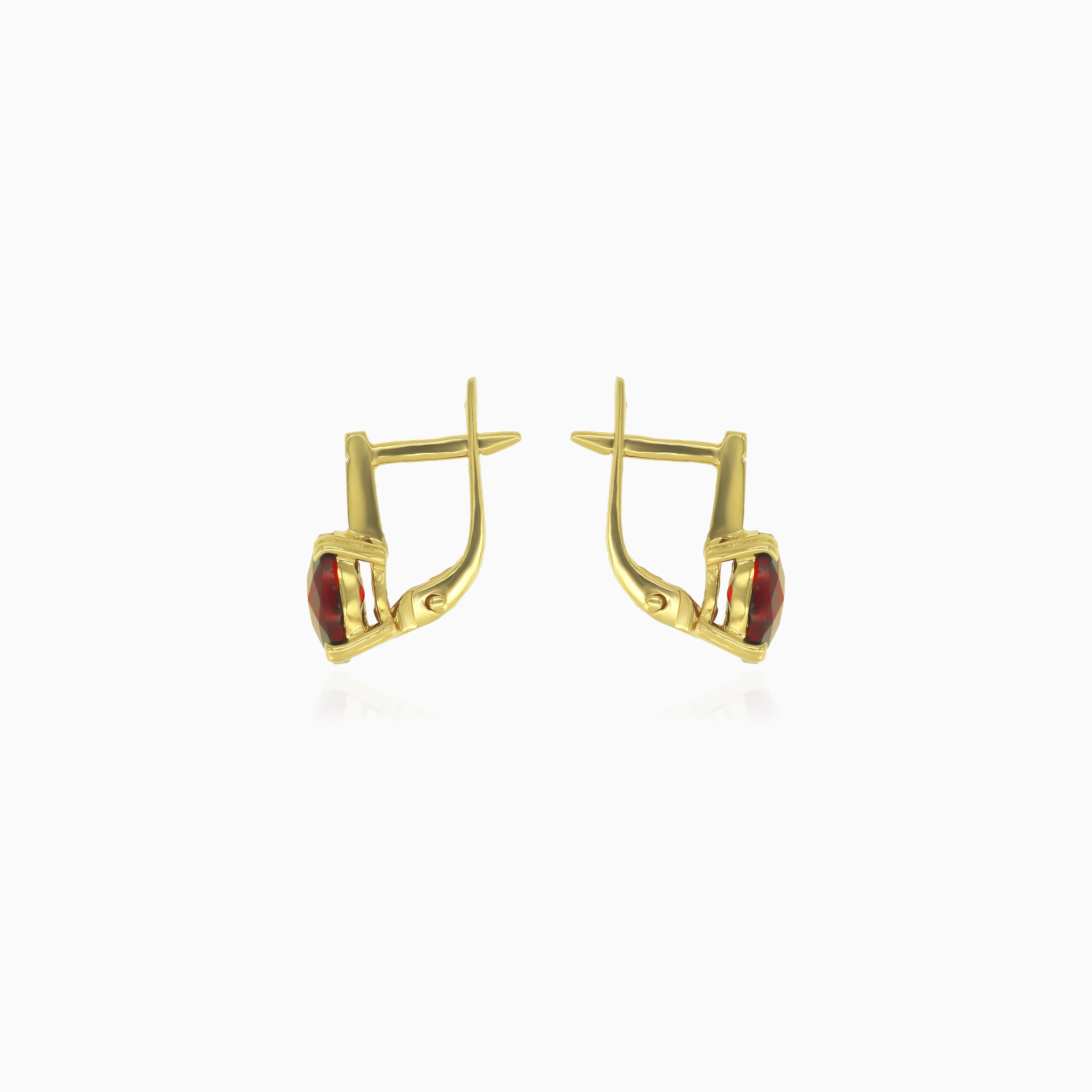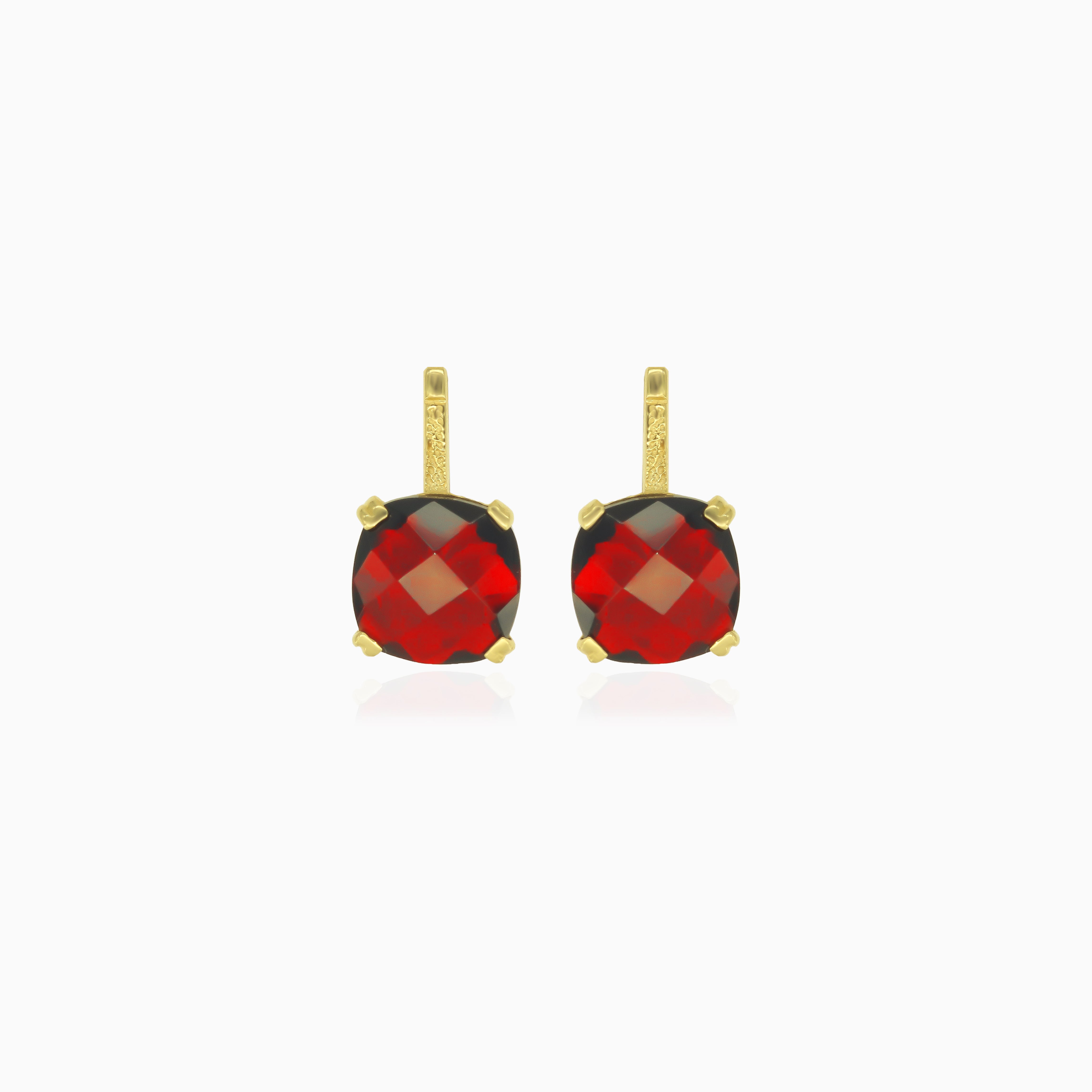 Schmücken Sie sich mit Eleganz in unseren Damen-Ohrringen, die einen Granat im Kissen-Schliff in feiner Stufenfassung zeigen, gehalten von einer Krallenfassung und einem Klappverschluss aus 14-karätigem Gelbgold. Diese atemberaubenden Ohrringe verleihen jedem Outfit einen Hauch von Raffinesse.