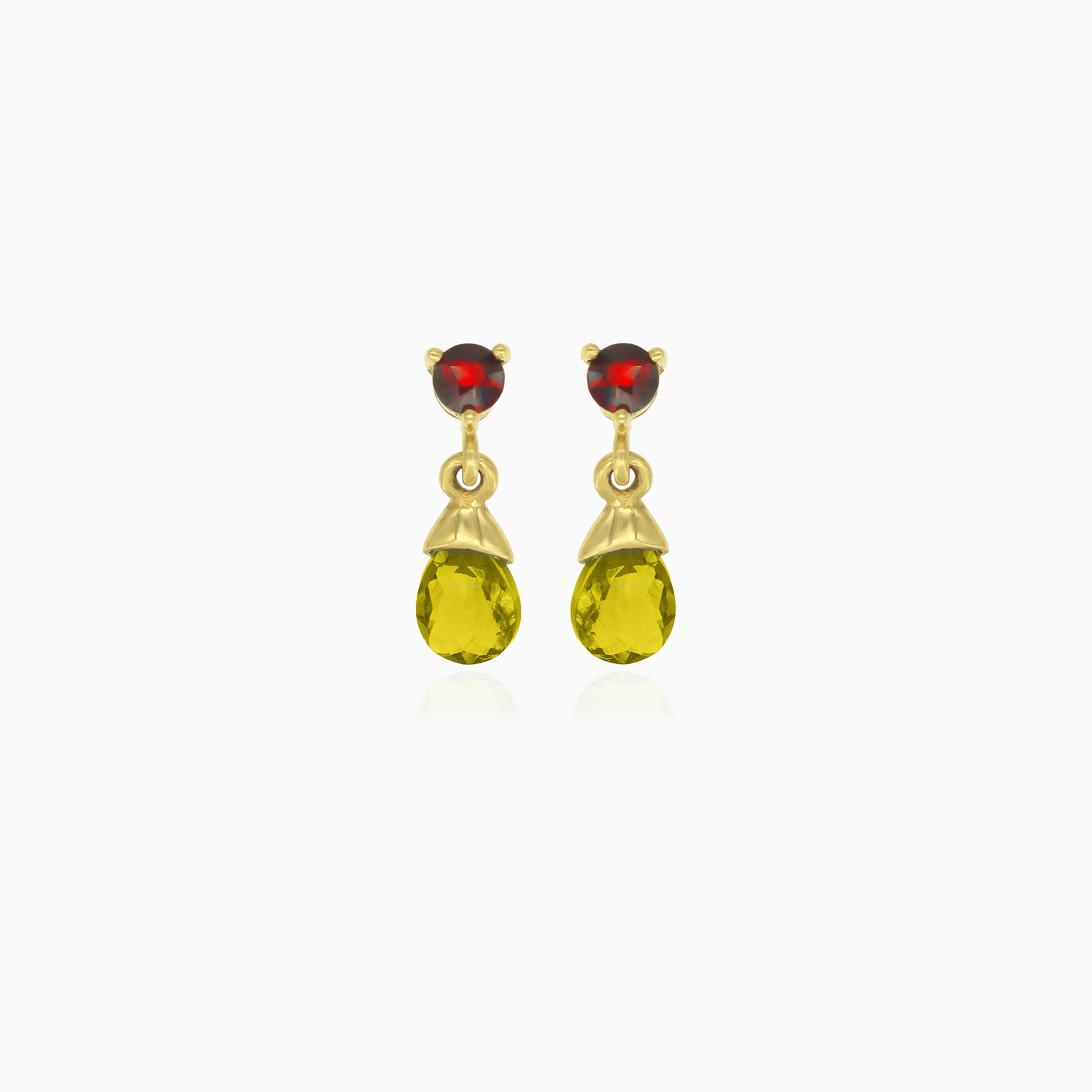 Granat- und Moldavit-Gold-Tropfenohrringe