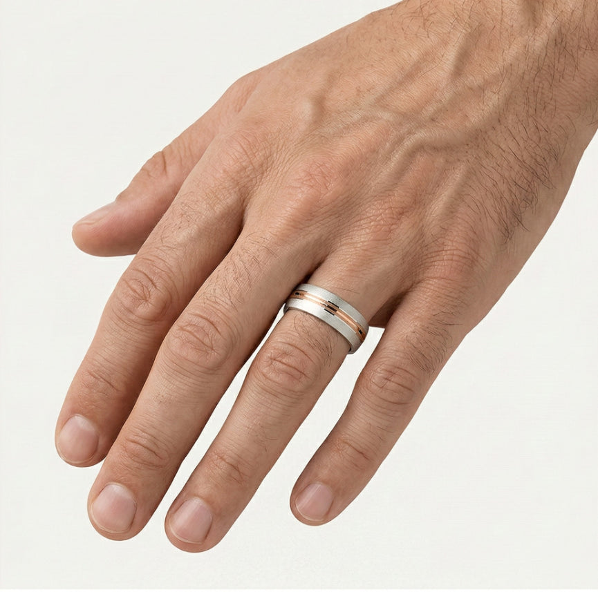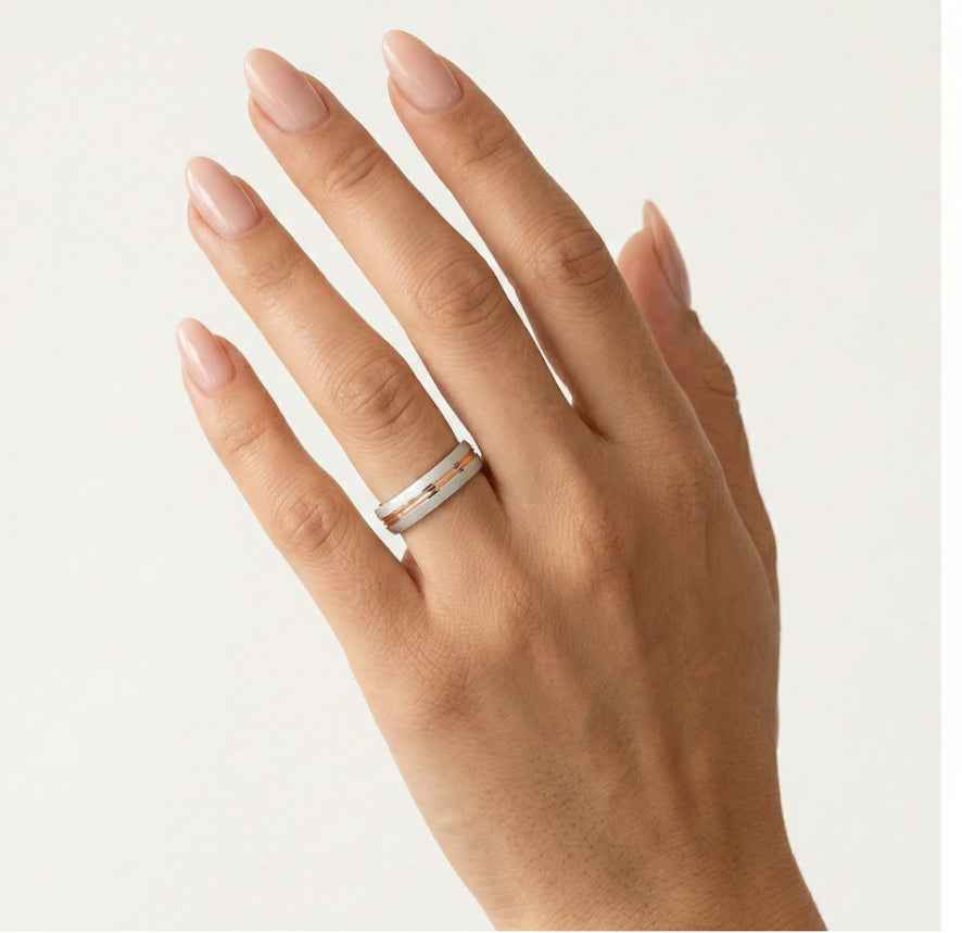 Einzigartiger Ehering aus Weiß- und Roségold