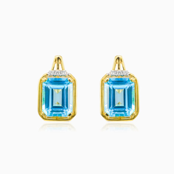 Smaragdschliff Blautopas in 14kt Gelbgold Ohrringen gefasst