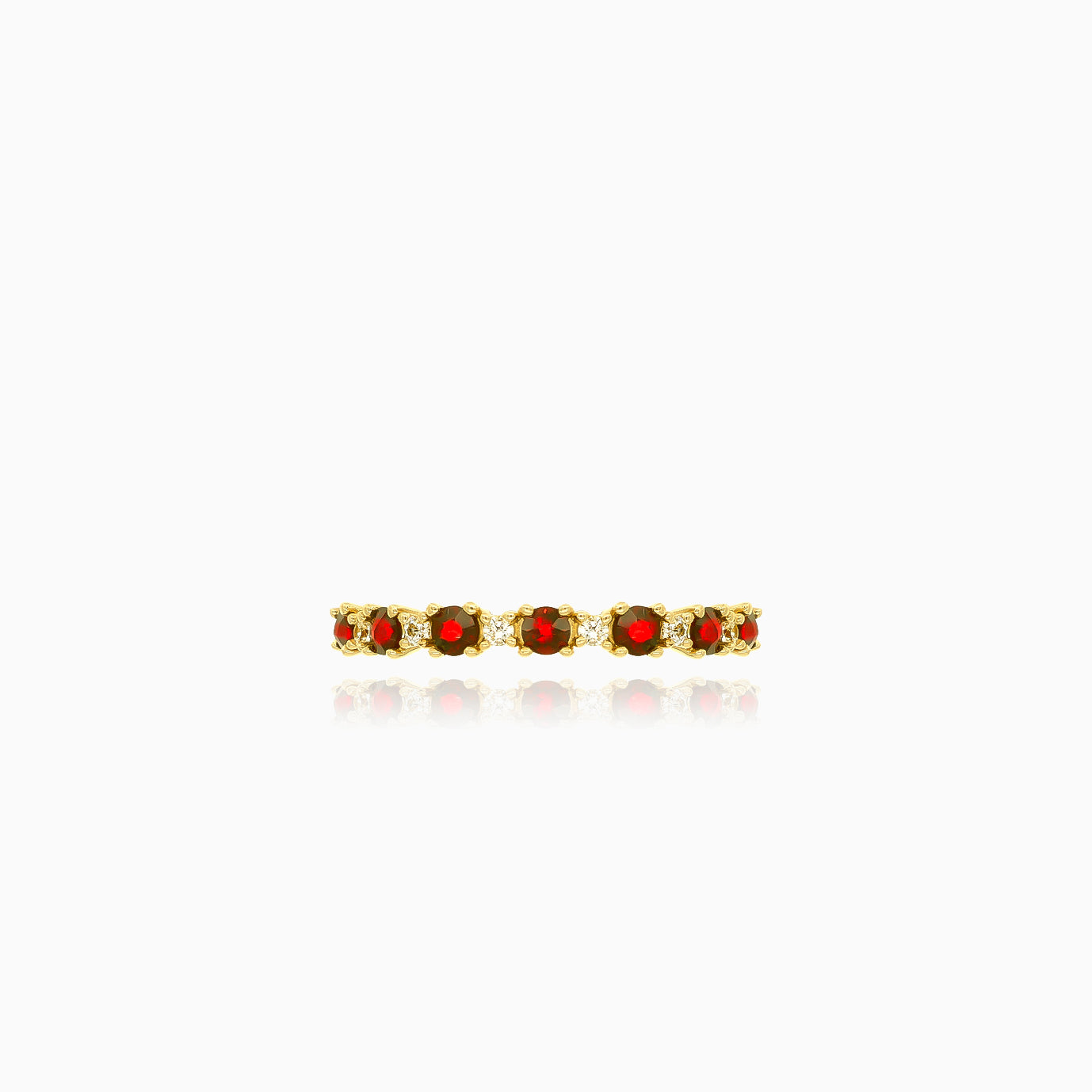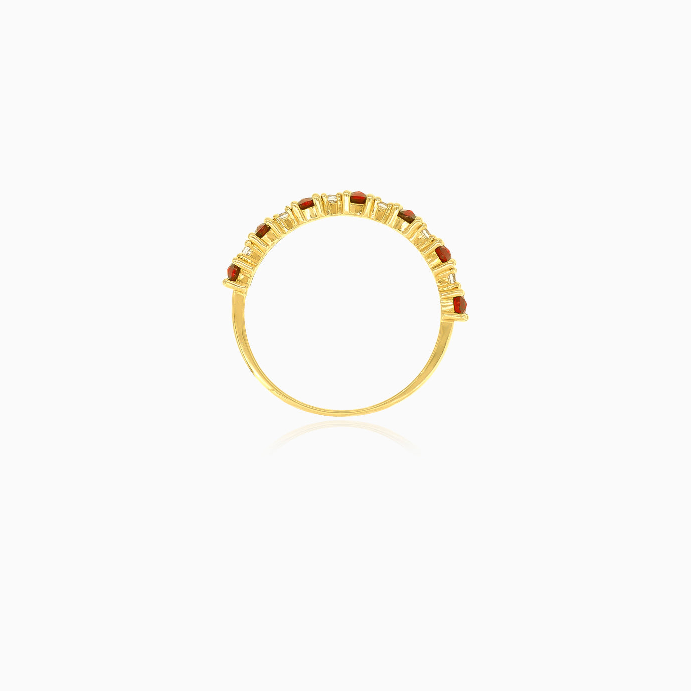 Klassischer Gelbgoldring mit Granat und Zirkonia