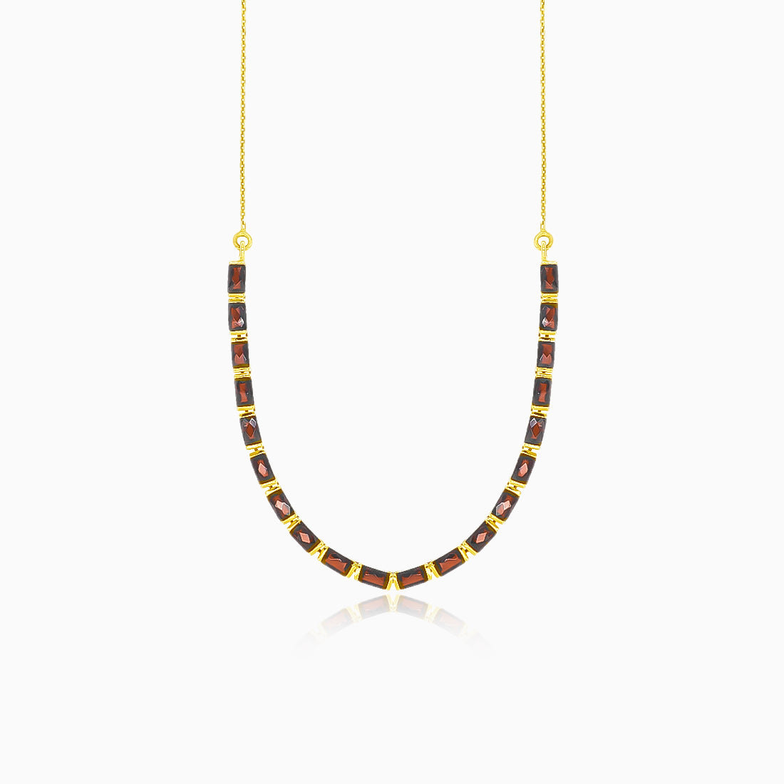 Diese exquisite Halskette aus 14 Karat Gelbgold zeigt ein rechteckiges Design mit atemberaubenden Granatsteinen. Gesichert wird sie mit einem Karabinerverschluss und verleiht Ihrem Look eine elegante Note.