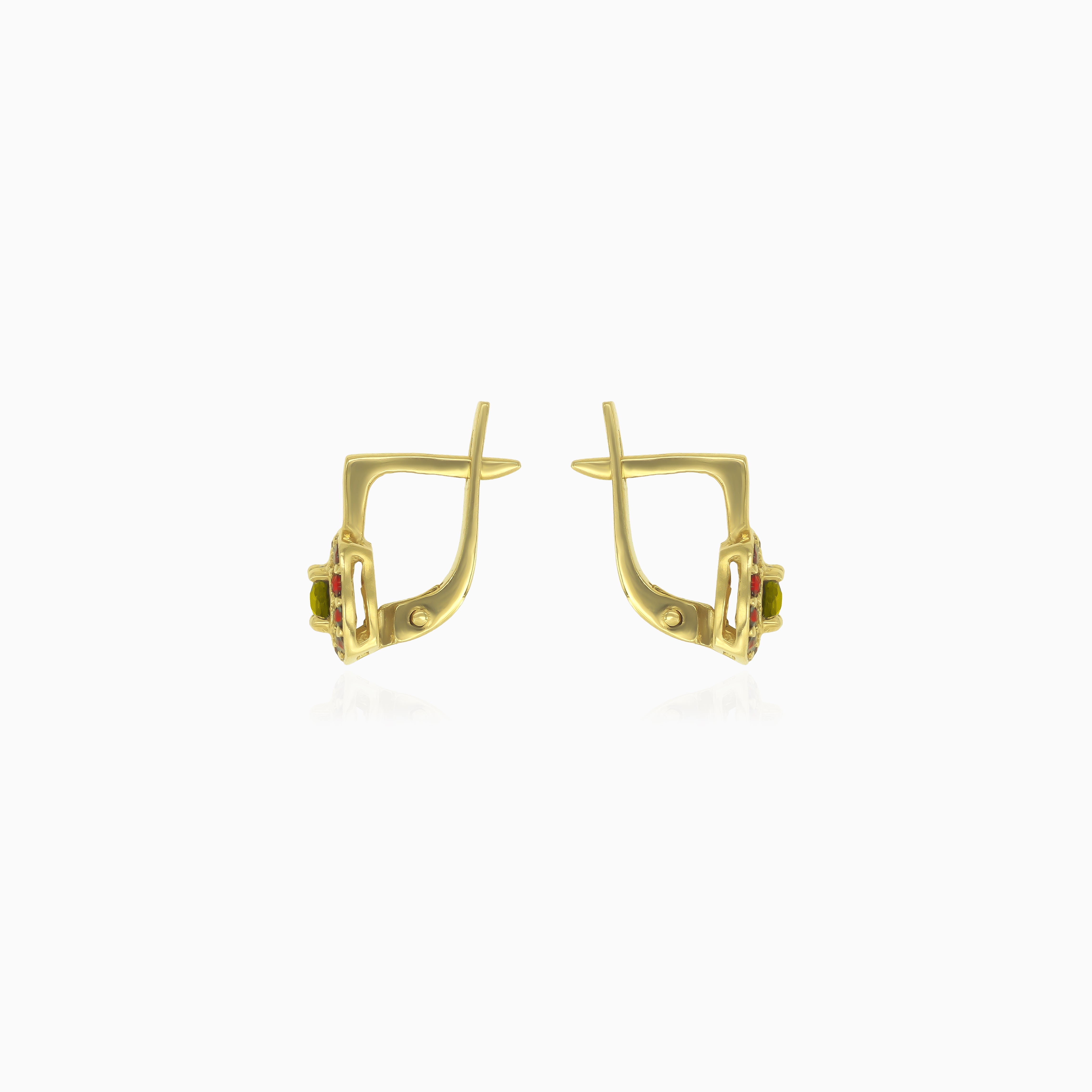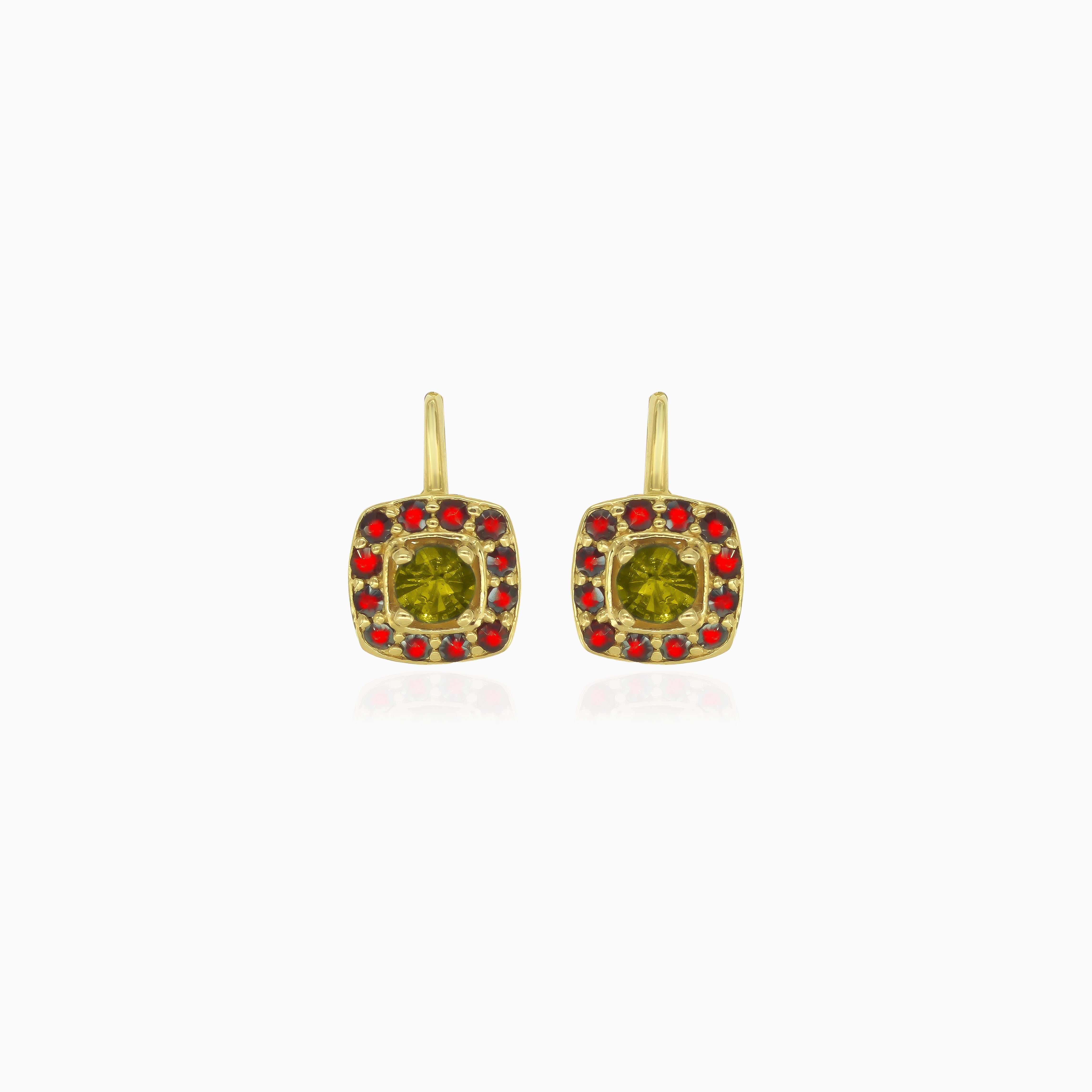 Ohrringe „Ewiger Glanz“ aus Gold mit Moldavit und Granat