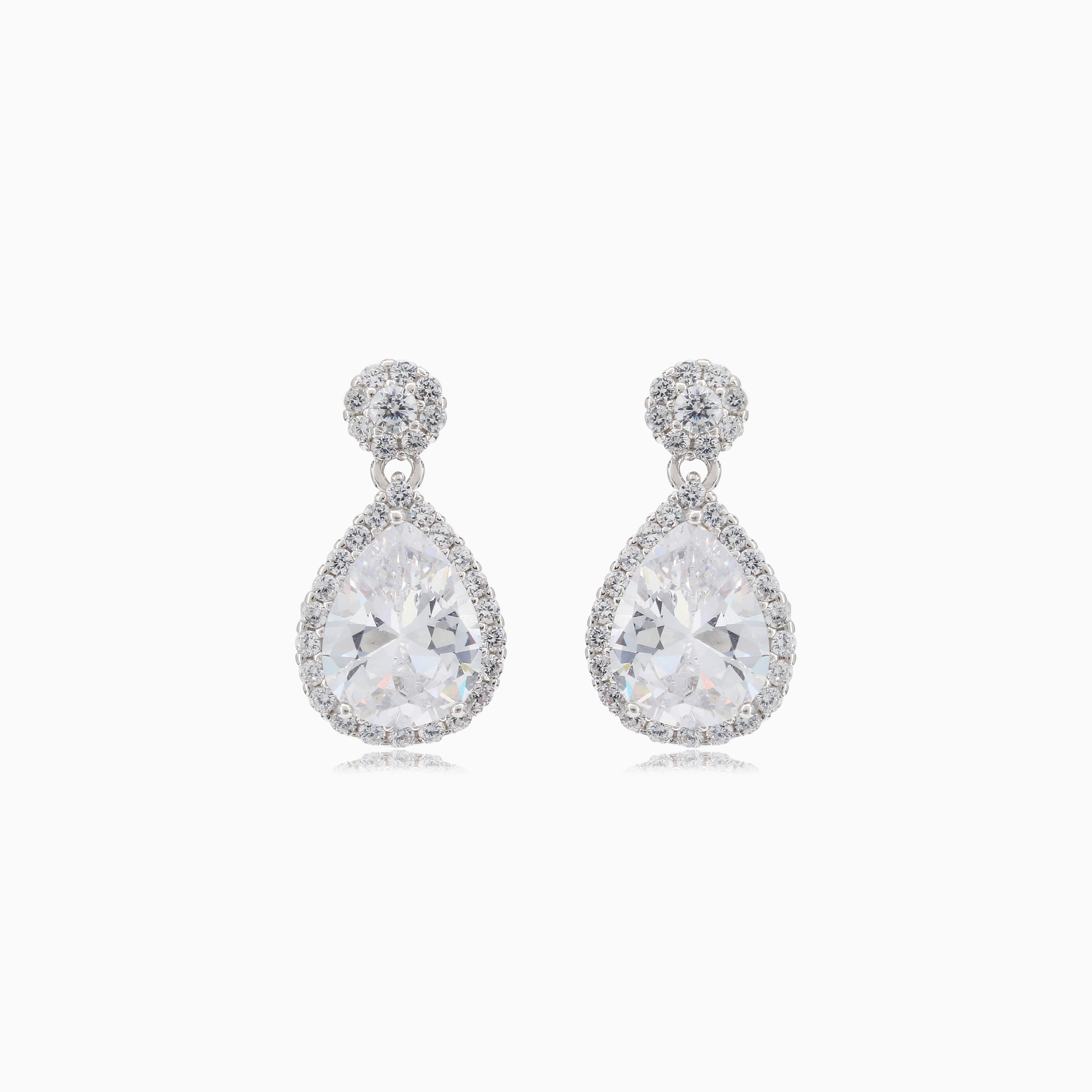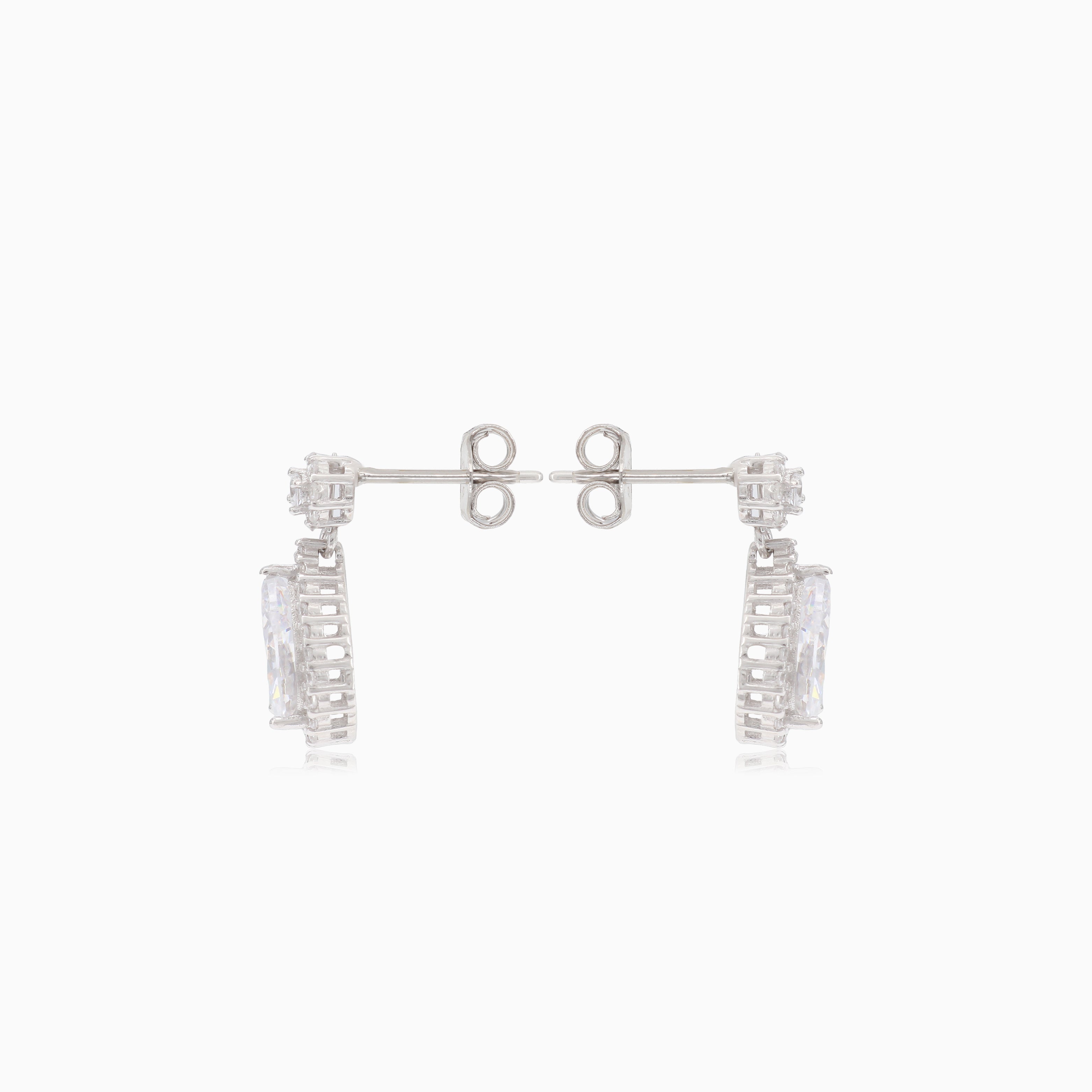 Diese atemberaubenden silbernen Tropfen-Hänge-Ohrstecker sind mit schimmernden Zirkonia-Steinen verziert und verleihen jedem Outfit Eleganz und Anziehungskraft.