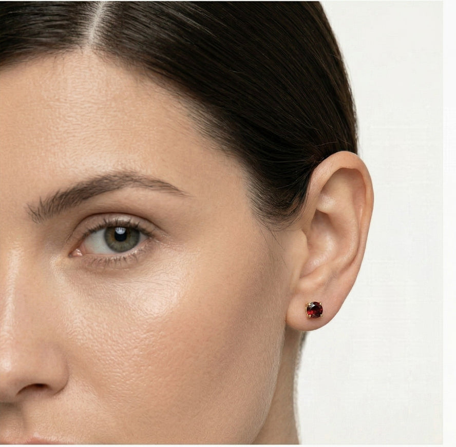 Stilvolle runde Granat-Ohrstecker