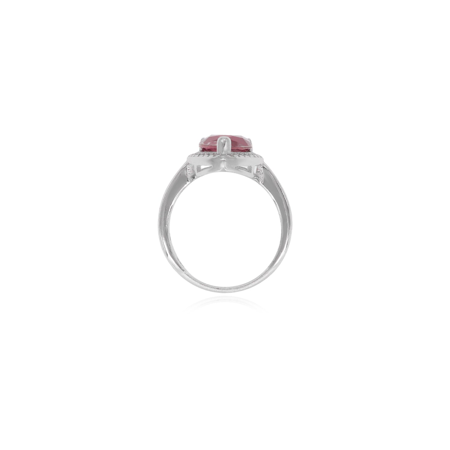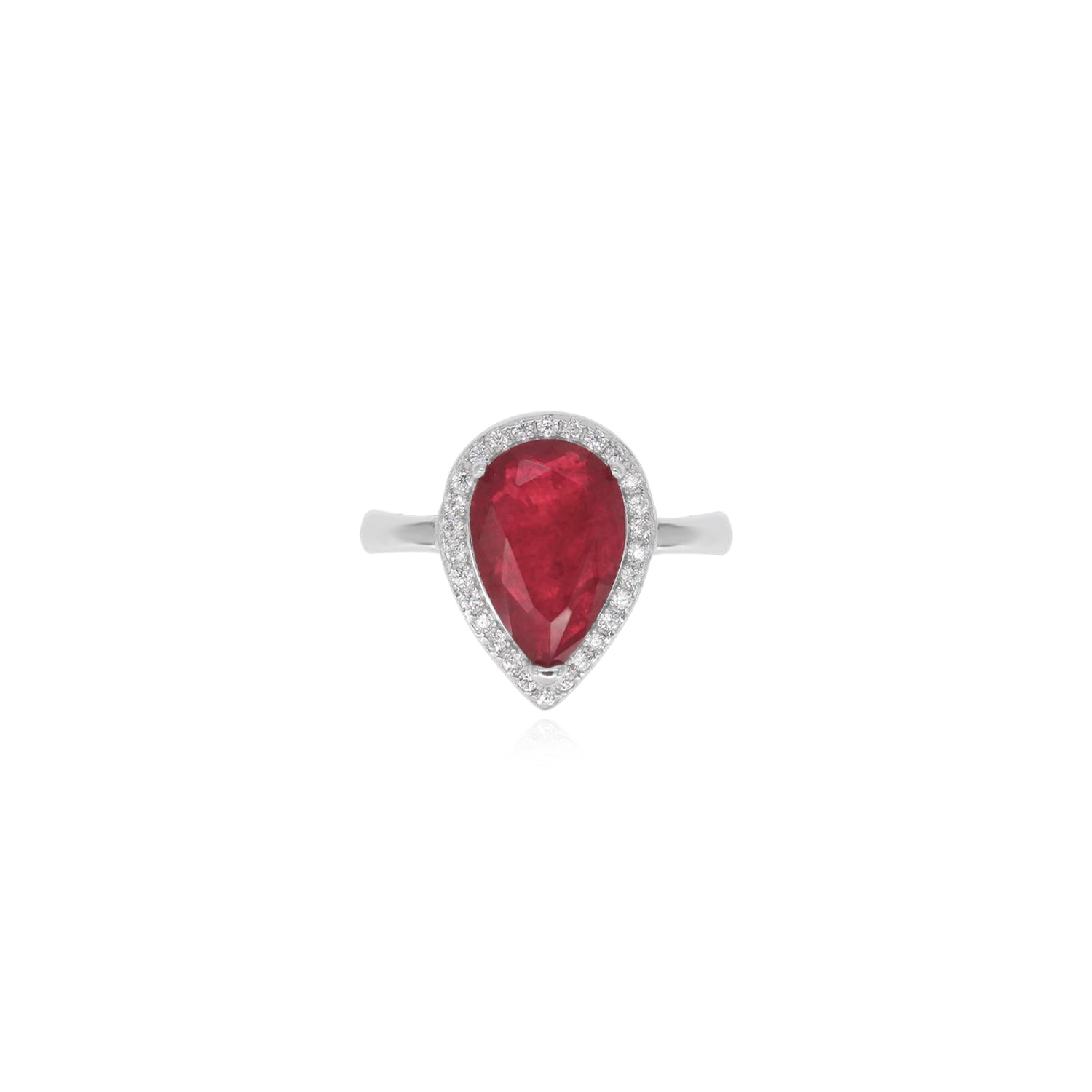 Ring aus Sterlingsilber mit tropfenförmigem Rubin und runden Zirkonia