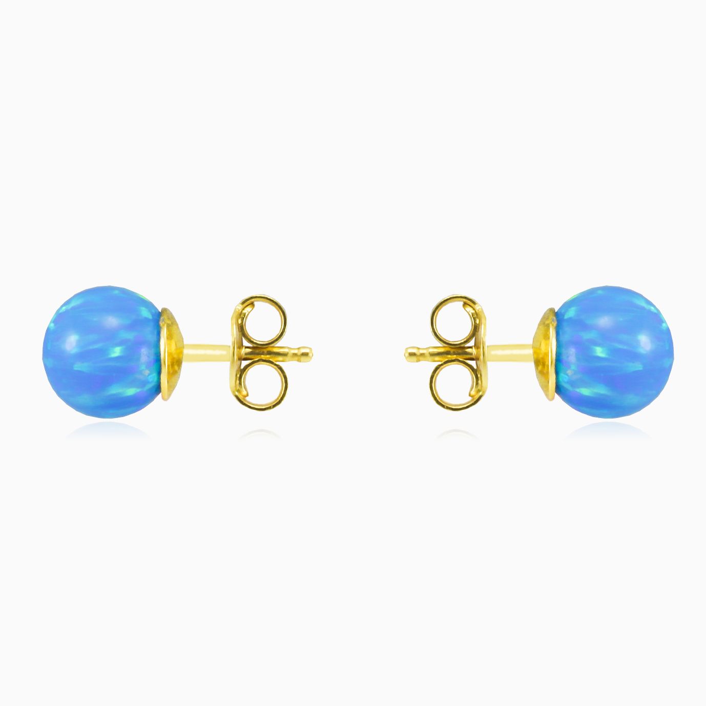 Runde Kugel aus blauem Opal, gefasst in 14kt Gelbgold Steckerohrringen.