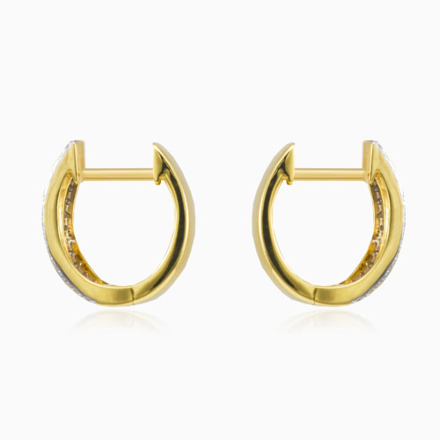 Elegante Ohrringe aus 14 Karat Gelbgold mit zwei Reihen von 52 Brillantschliff-Diamanten.