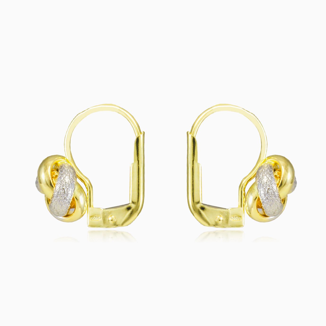 Geknotete Anhängerohrringe aus 14K Gelb- und Weißgold mit Hochglanz- und Mattfinish.