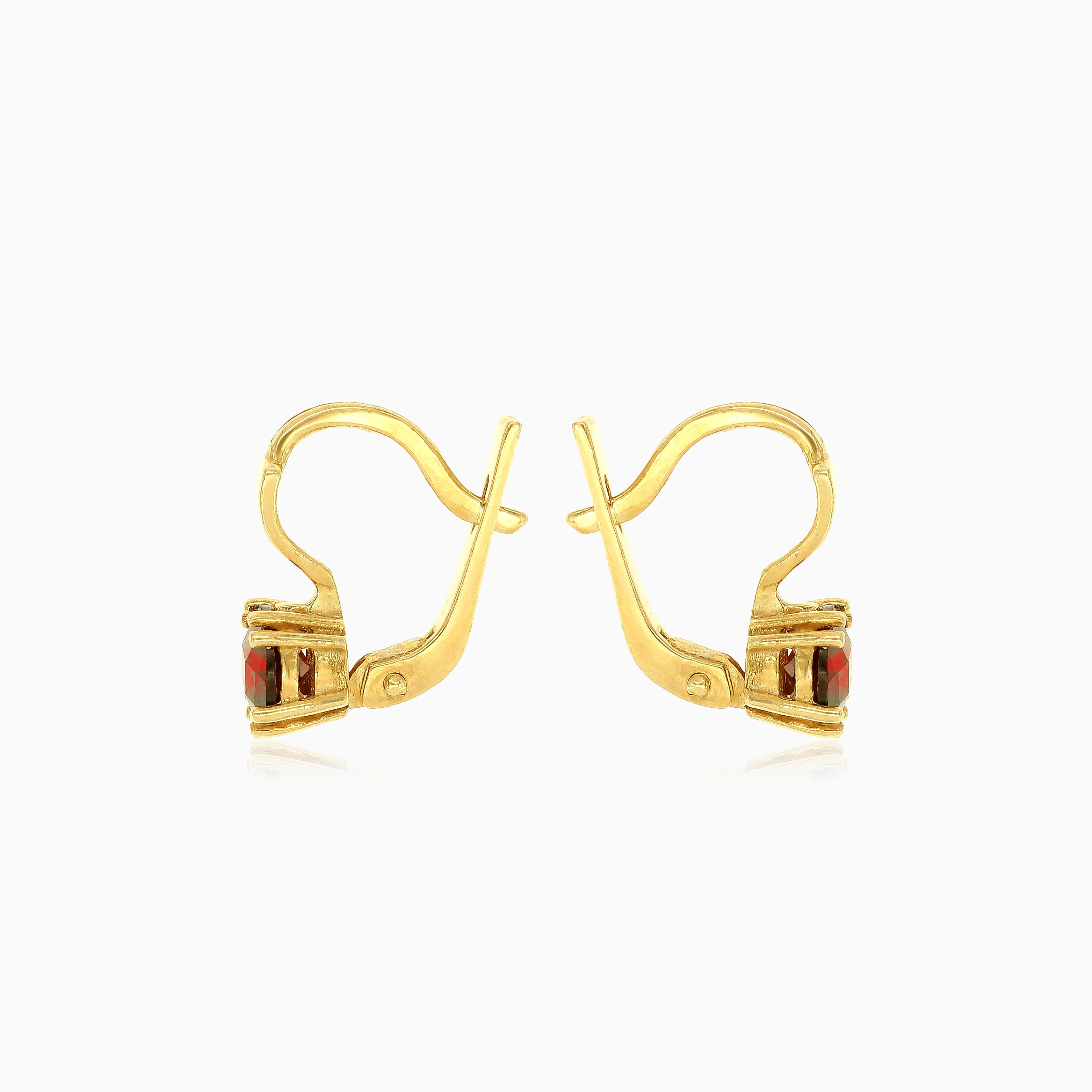 Verleihen Sie Ihrem Stil mit unseren Granattropfen-Ohrringen neuen Glanz. Gefertigt aus 14 Karat Gelbgold, zeigen diese Ohrringe runde Granate im feinen Treppenschliff in einer eleganten 8-Krappenfassung. Gesichert mit Klappbügelverschlüssen für zusätzlichen Komfort.