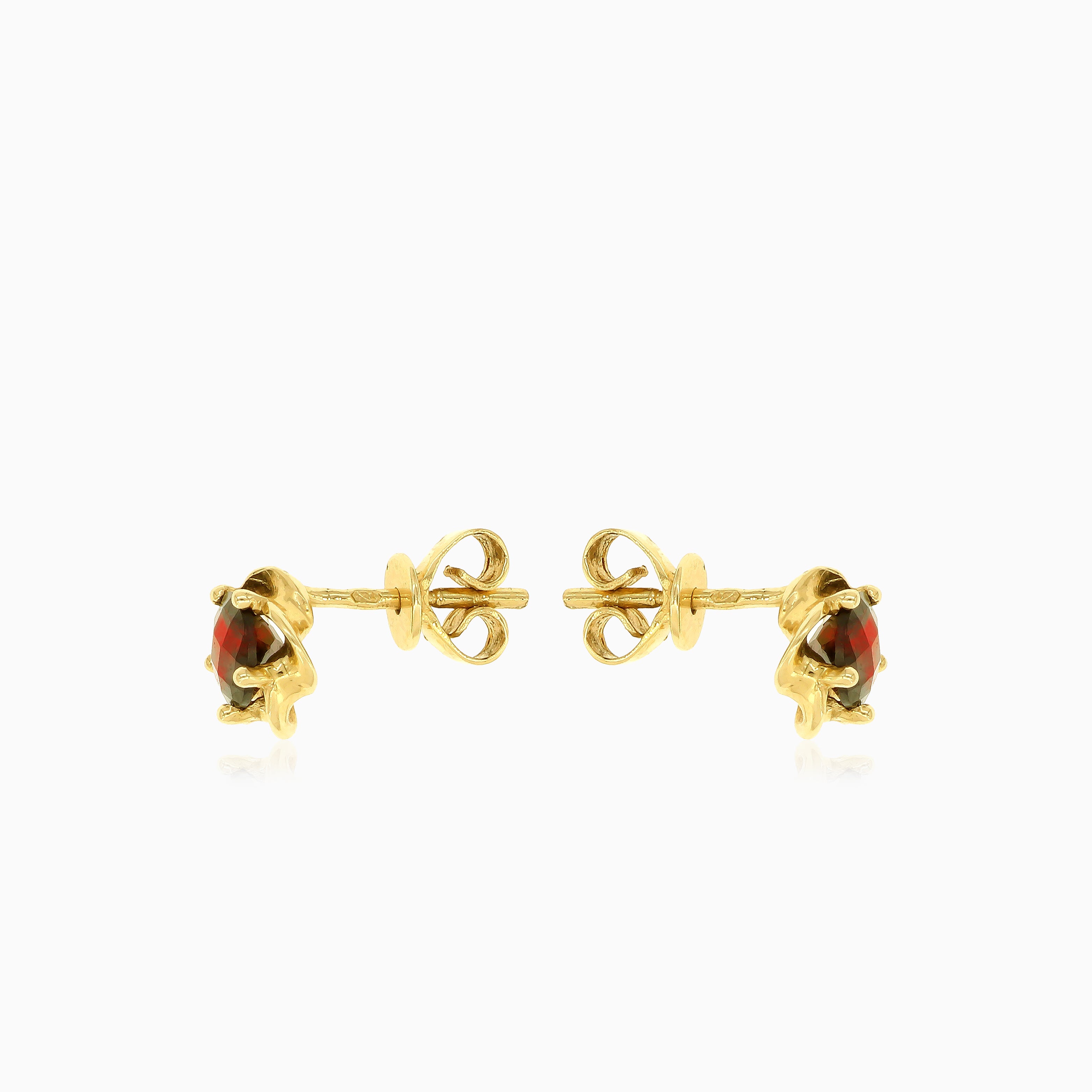 Verleihen Sie Ihrem Stil mit diesen runden, fein gestuften Granat-Ohrsteckern mehr Ausdruck. Gefertigt aus 14-karätigem Gelbgold und mit einer sicheren 5-Krappenfassung versehen, sind diese Ohrringe mit einem Pousette-Verschluss für zusätzlichen Komfort ausgestattet.