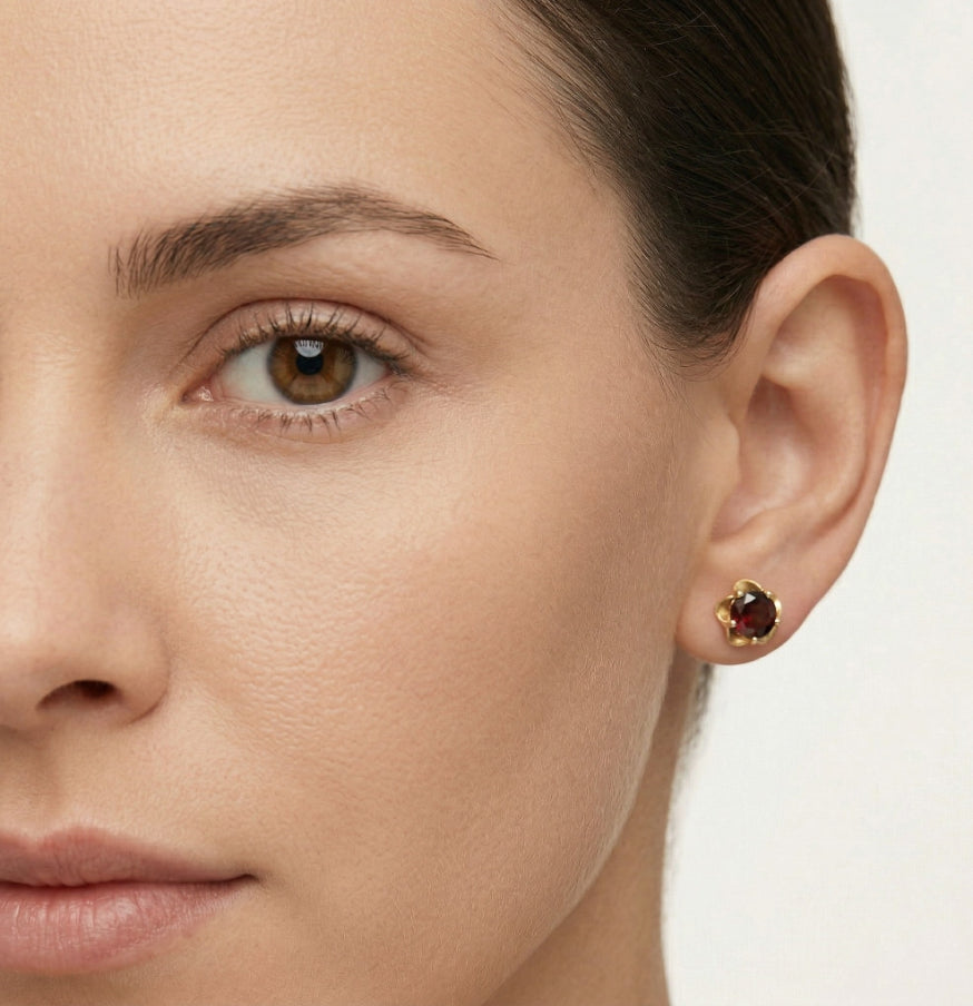 Garnet Runde Ohrstecker mit 5 Krappen