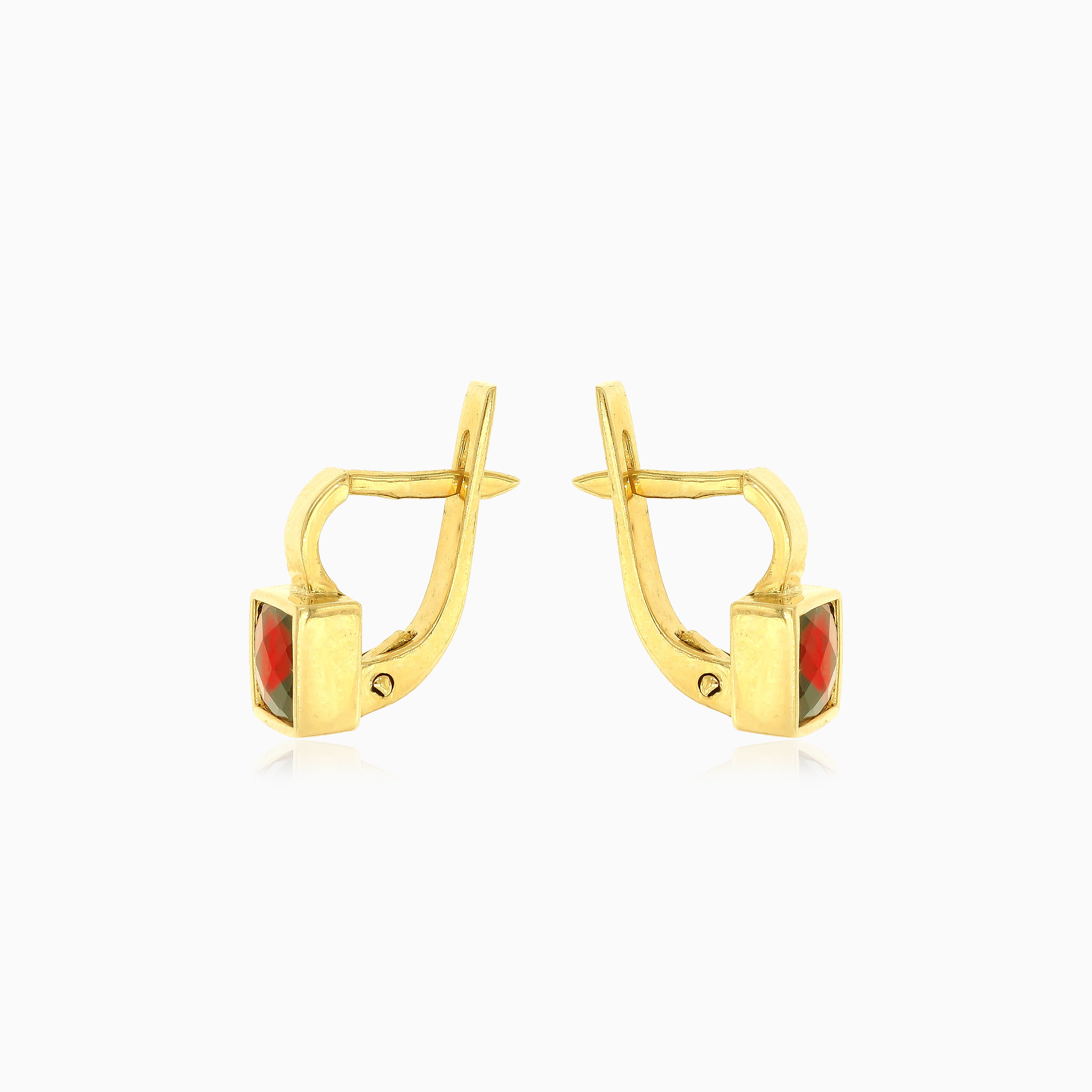Granat-Ohrringe im Quadrat-Drop-Design aus 14kt Gold