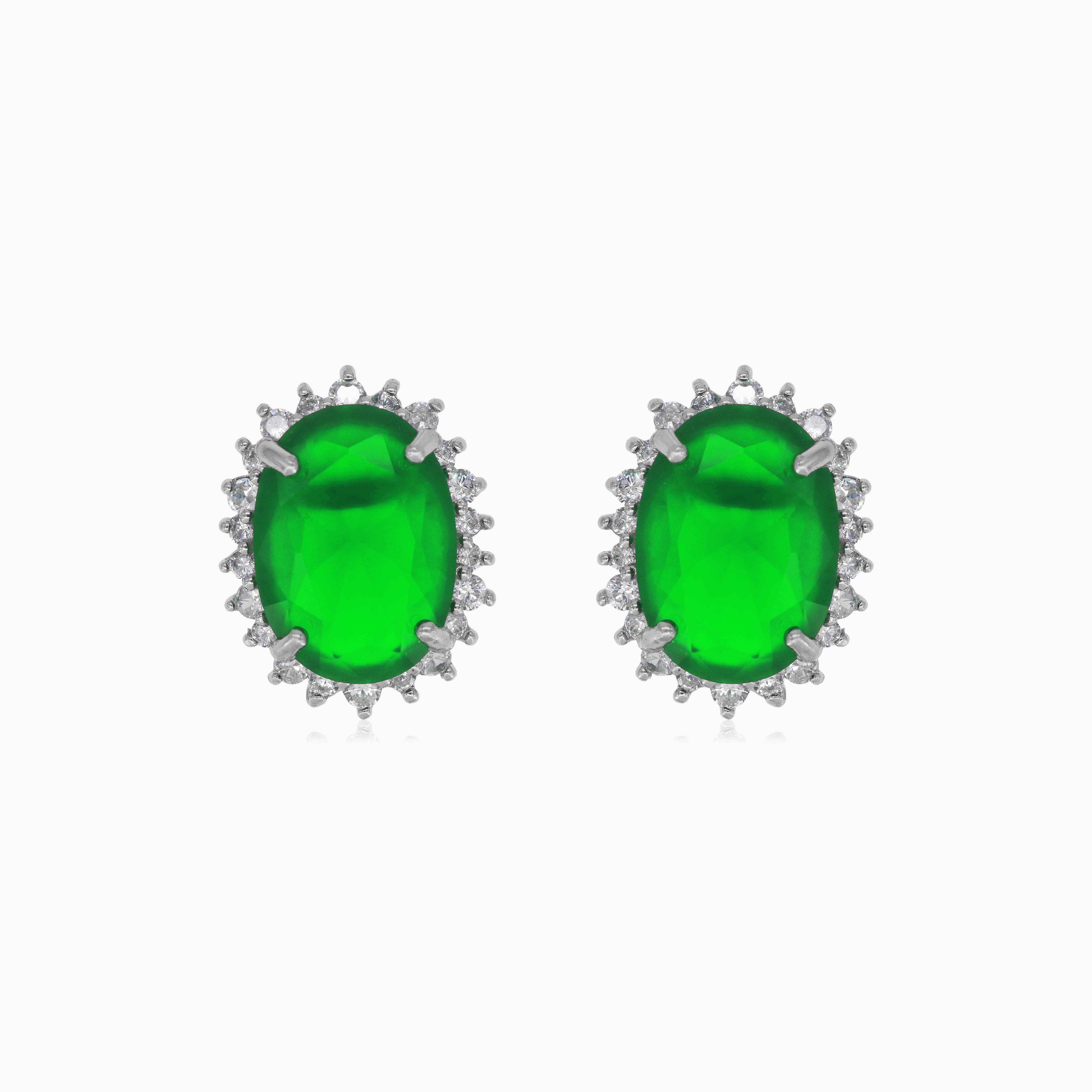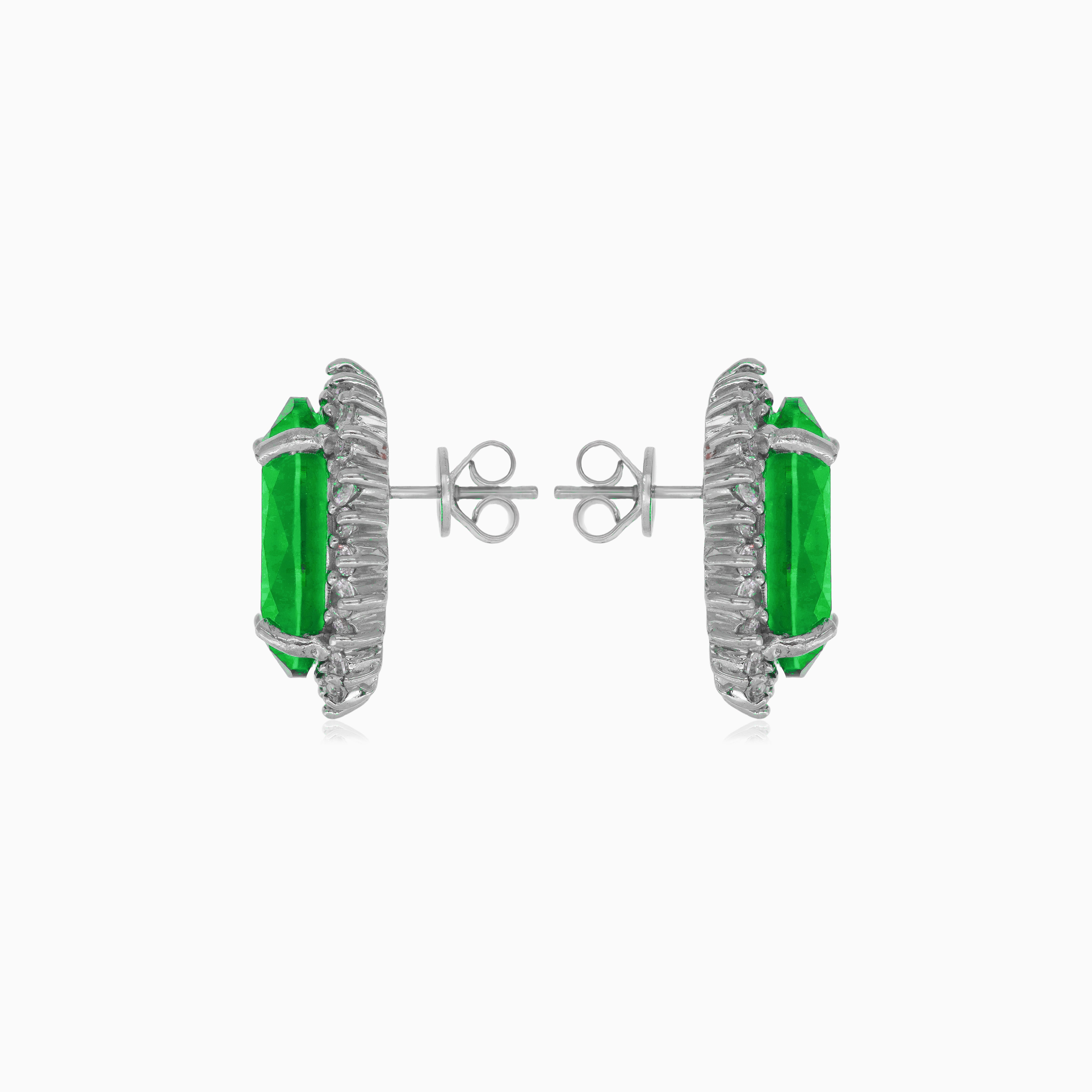 Halo-Ohrringe aus Sterlingsilber mit oval geschliffenem Smaragd