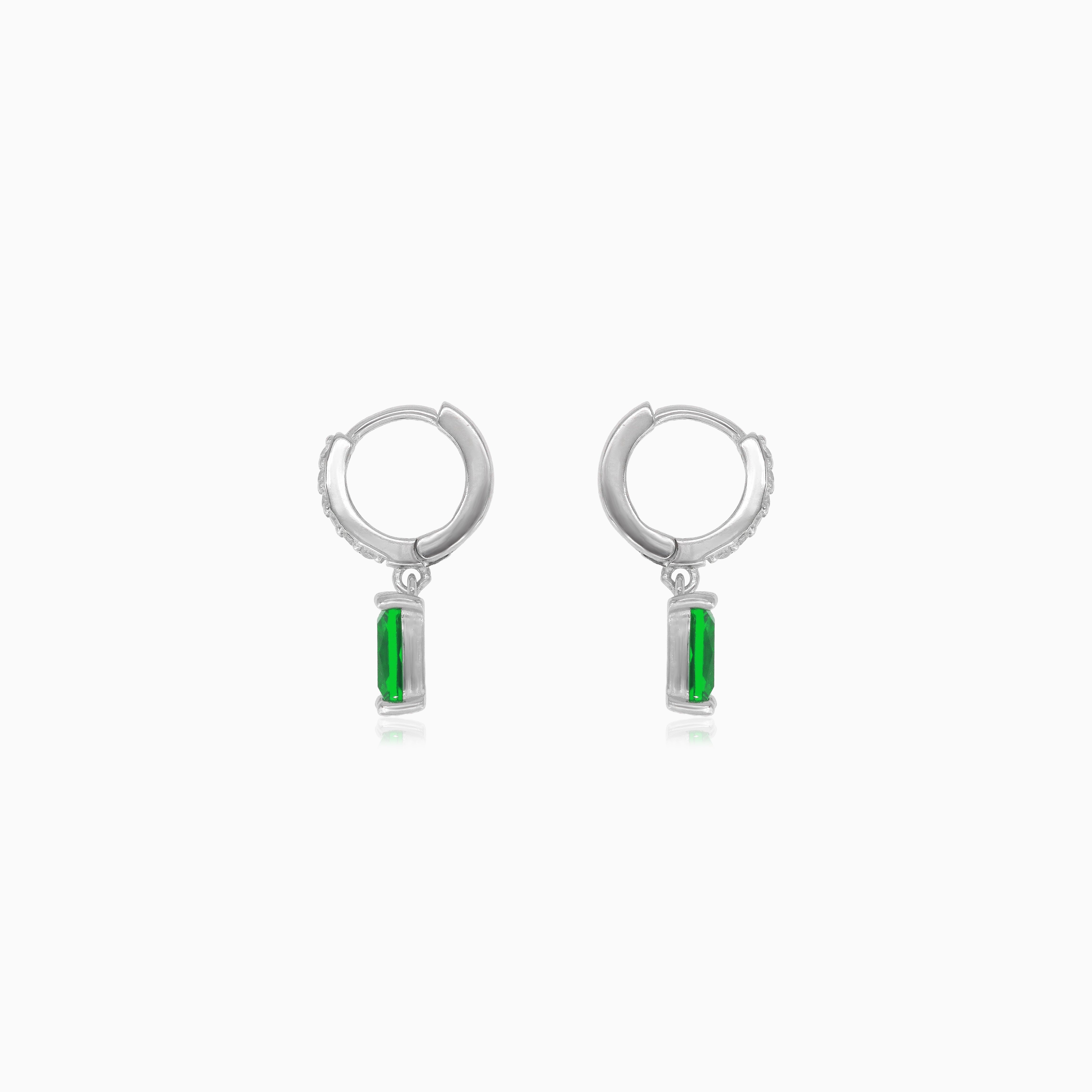Diese raffinierten Sterlingsilber-Hängerohringe verfügen über einen strahlenden Smaragd-Schliff synthetischen Smaragd als Zentrum, ergänzt durch funkelnde runde Zirkonia am Huggie-Verschluss. Die Krappenfassung verstärkt die Brillanz der Steine und verleiht jedem Look einen eleganten Akzent.