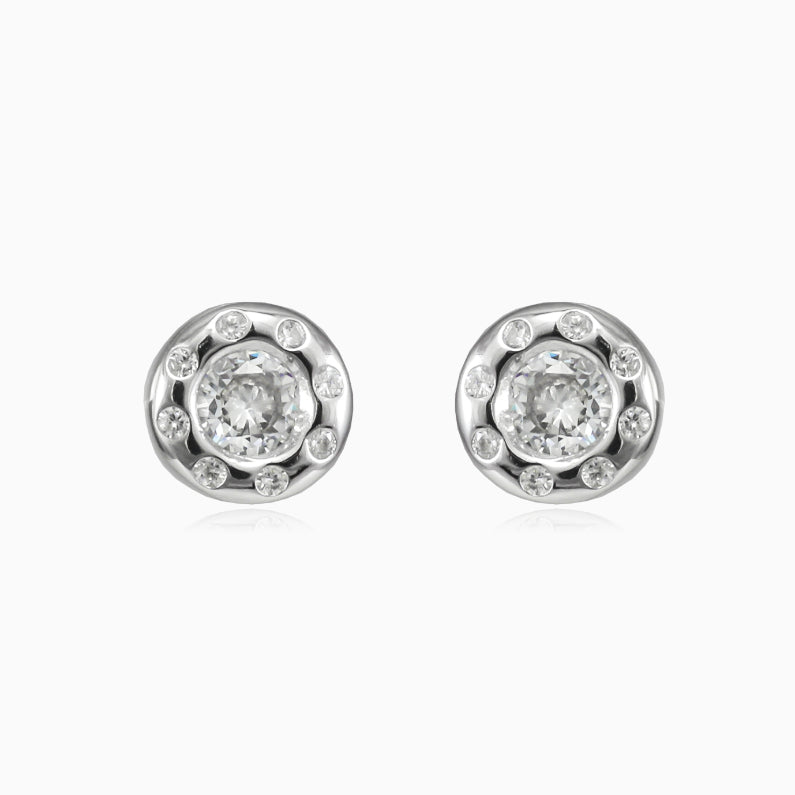 Sterling-Silber Stecker mit Hochglanz-Finish und runden Cubic-Zirkonia.