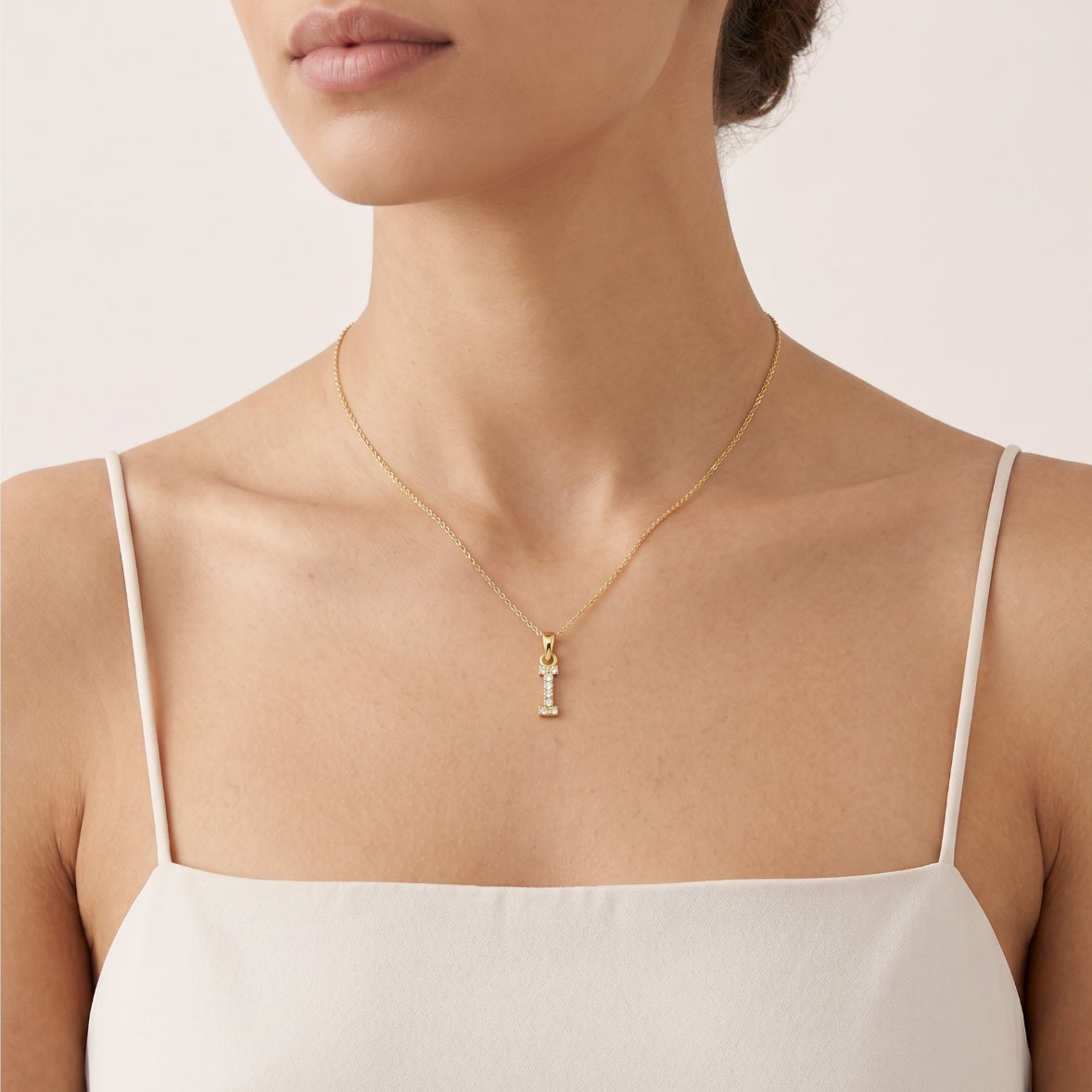 Gold-Anhänger mit dem Buchstaben "I" und Zirkonias