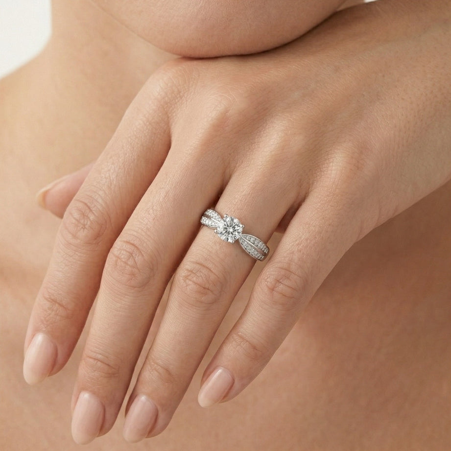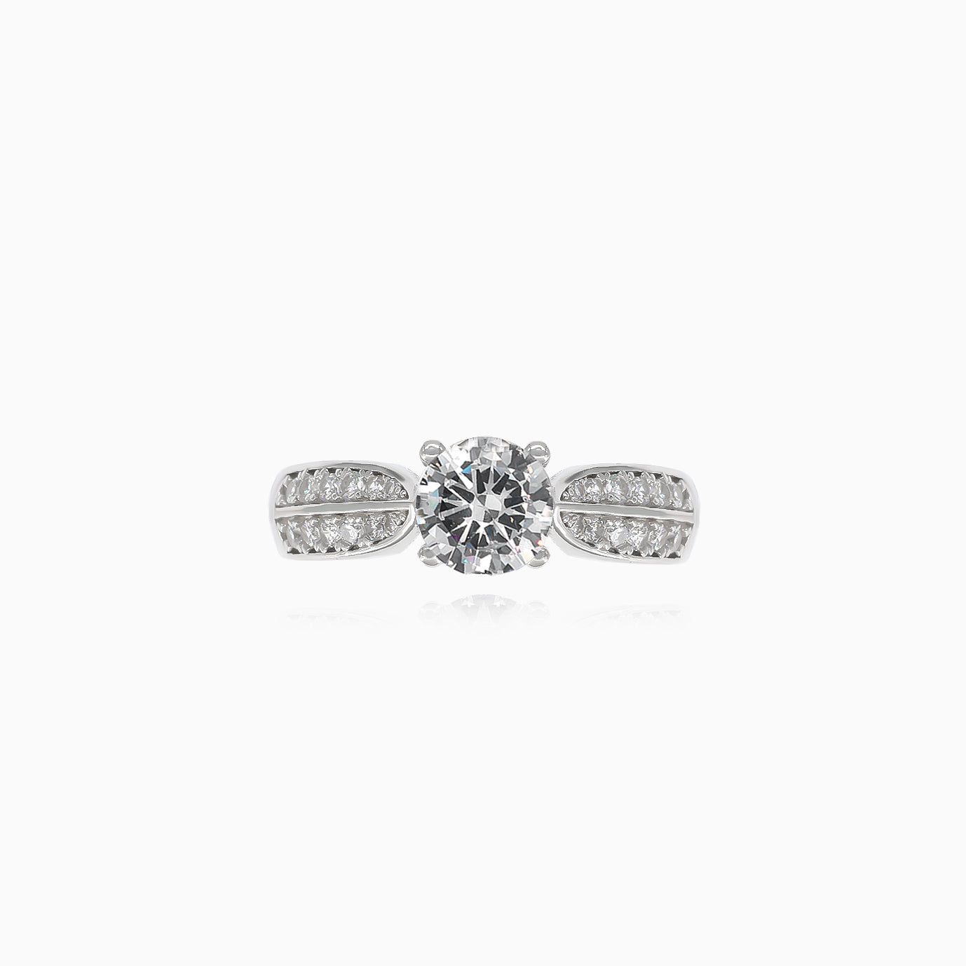 Verleihen Sie Ihrem Stil mit unserem Silberring für Damen ein Upgrade, besetzt mit makellosen Zirkonia-Steinen im rund geschliffenen Feinstufenschliff, fein eingefasst in einer Krappenfassung. Seine zeitlose Schönheit verleiht jedem Outfit einen Hauch von Eleganz.