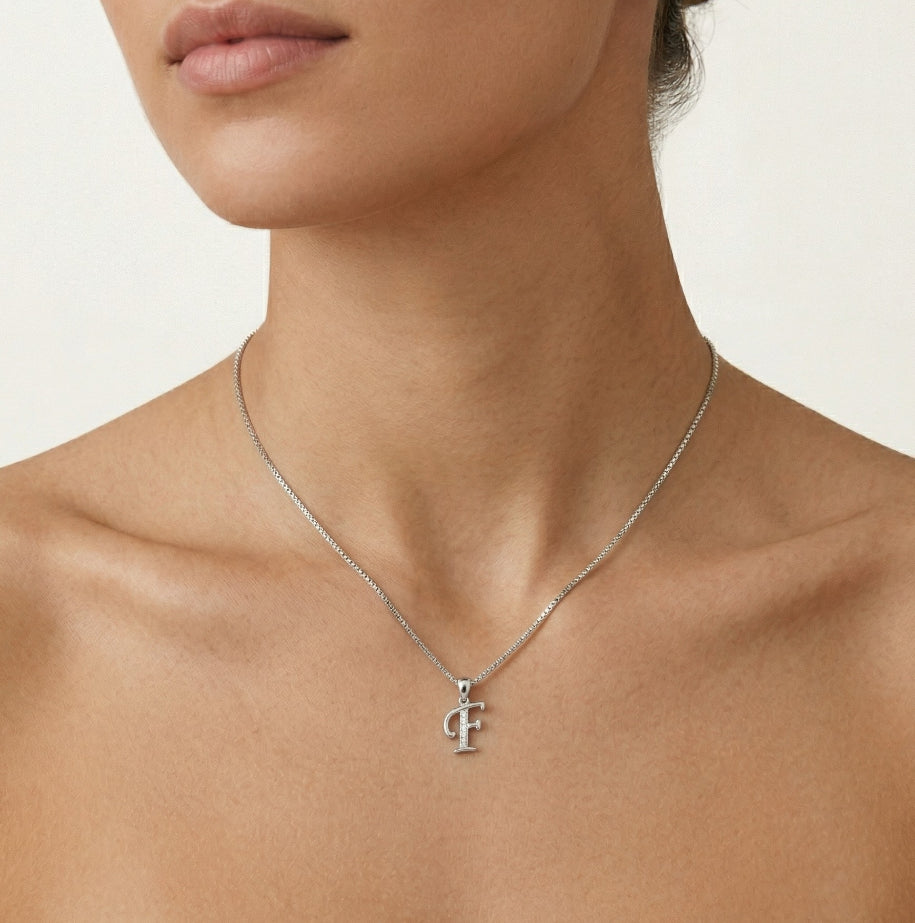 Wunderbarer Sterlingsilber-Anhänger in Form des Buchstabens F, kombiniert mit Zirkonia.