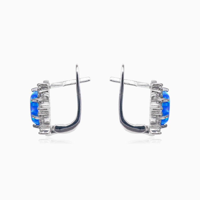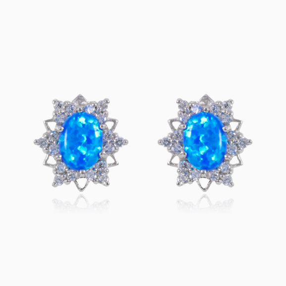 Wunderschöne Ohrringe aus Sterlingsilber in Sternform, kombiniert mit oval geschliffenem blauem Opal und verziert mit rund geschliffenen blauen Zirkonia-Steinen.