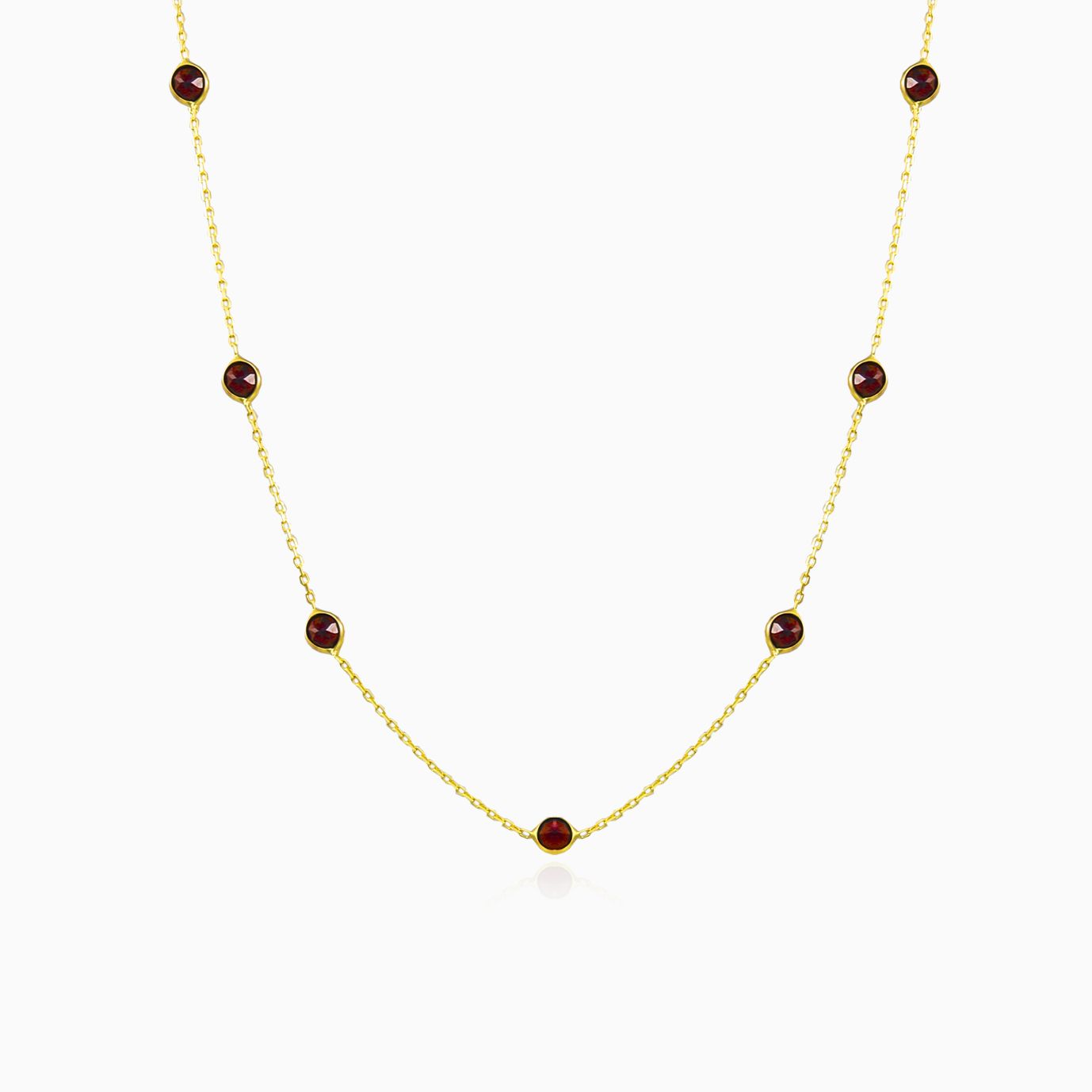 Moderne 14K-Goldkette mit 13 rund eingefassten Granaten.