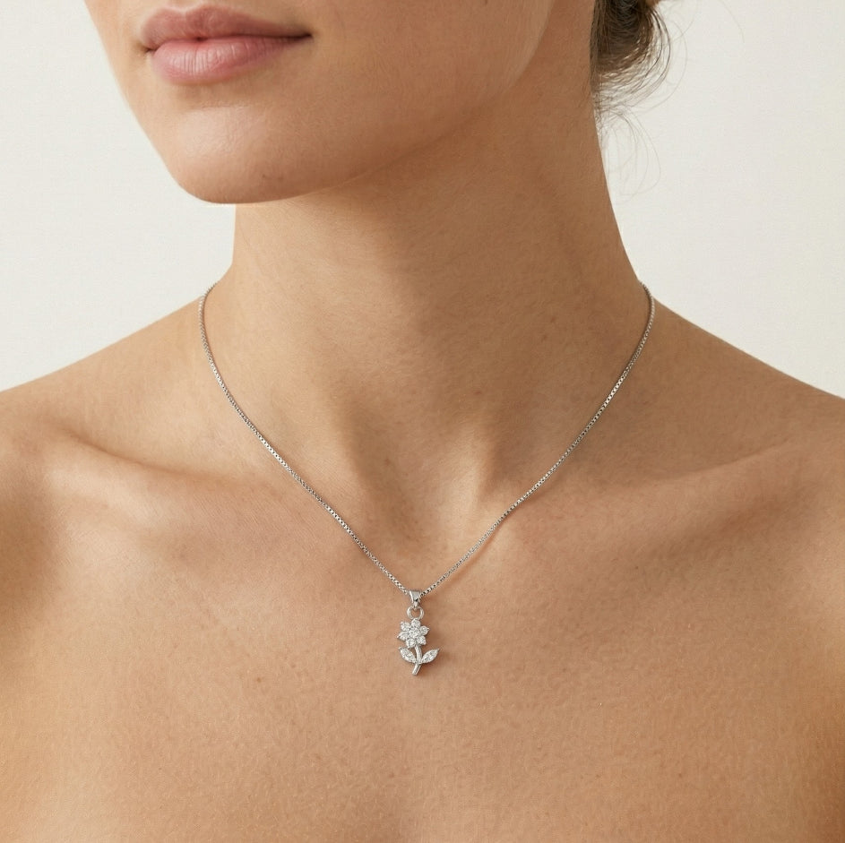 Anhänger aus Sterlingsilber in Blumenform, verziert mit Zirkonia.