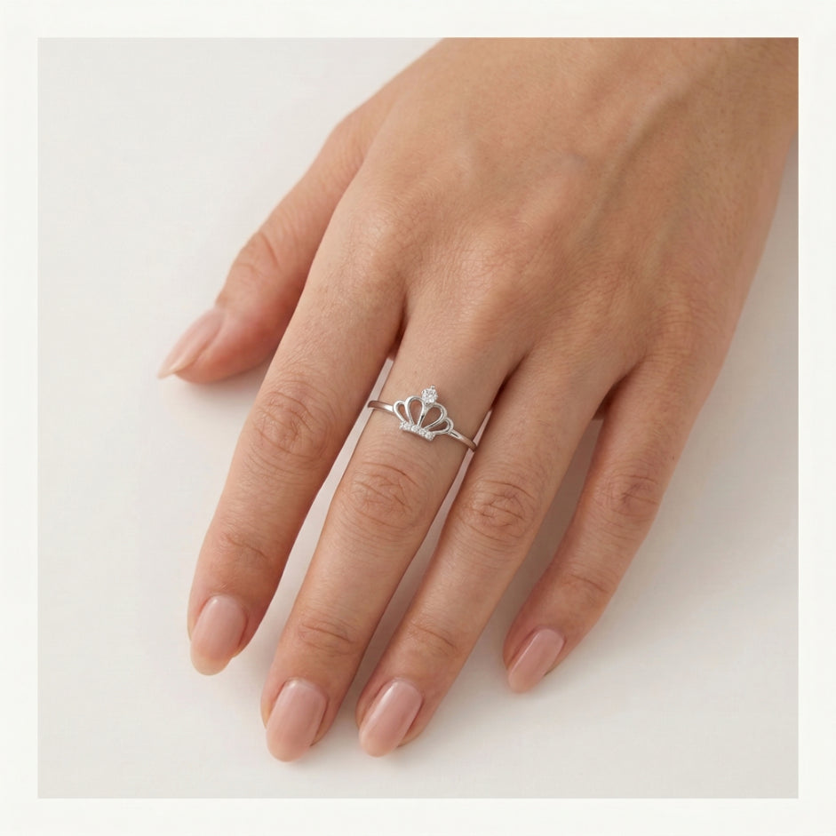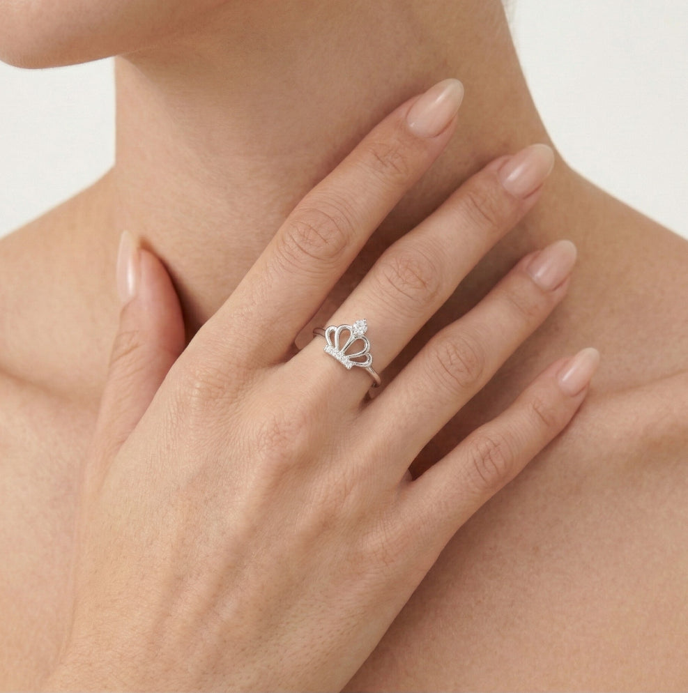 Silberring aus Sterlingsilber in Form einer Krone, verziert mit Zirkoniasteinen.