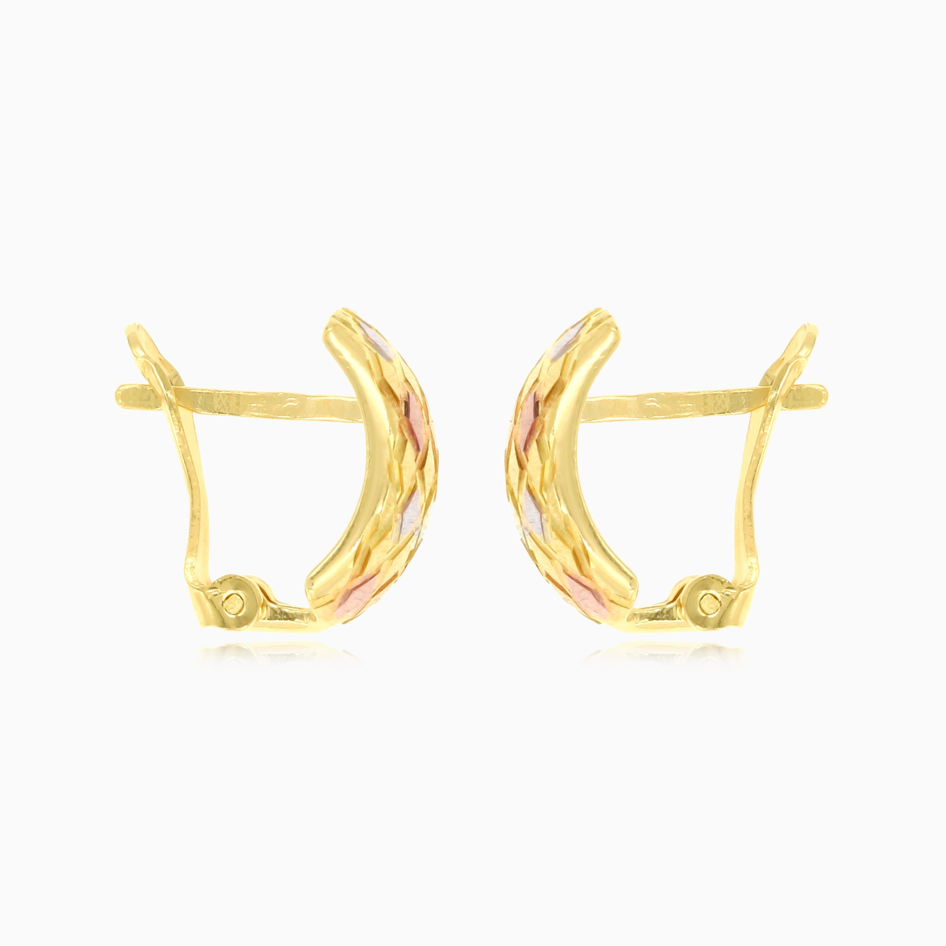 Damenohrringe aus dreifarbigem Gold mit Klappbügelverschluss, die 14 kt Gelb-, Weiß- und Roségold harmonisch und vielseitig verbinden.