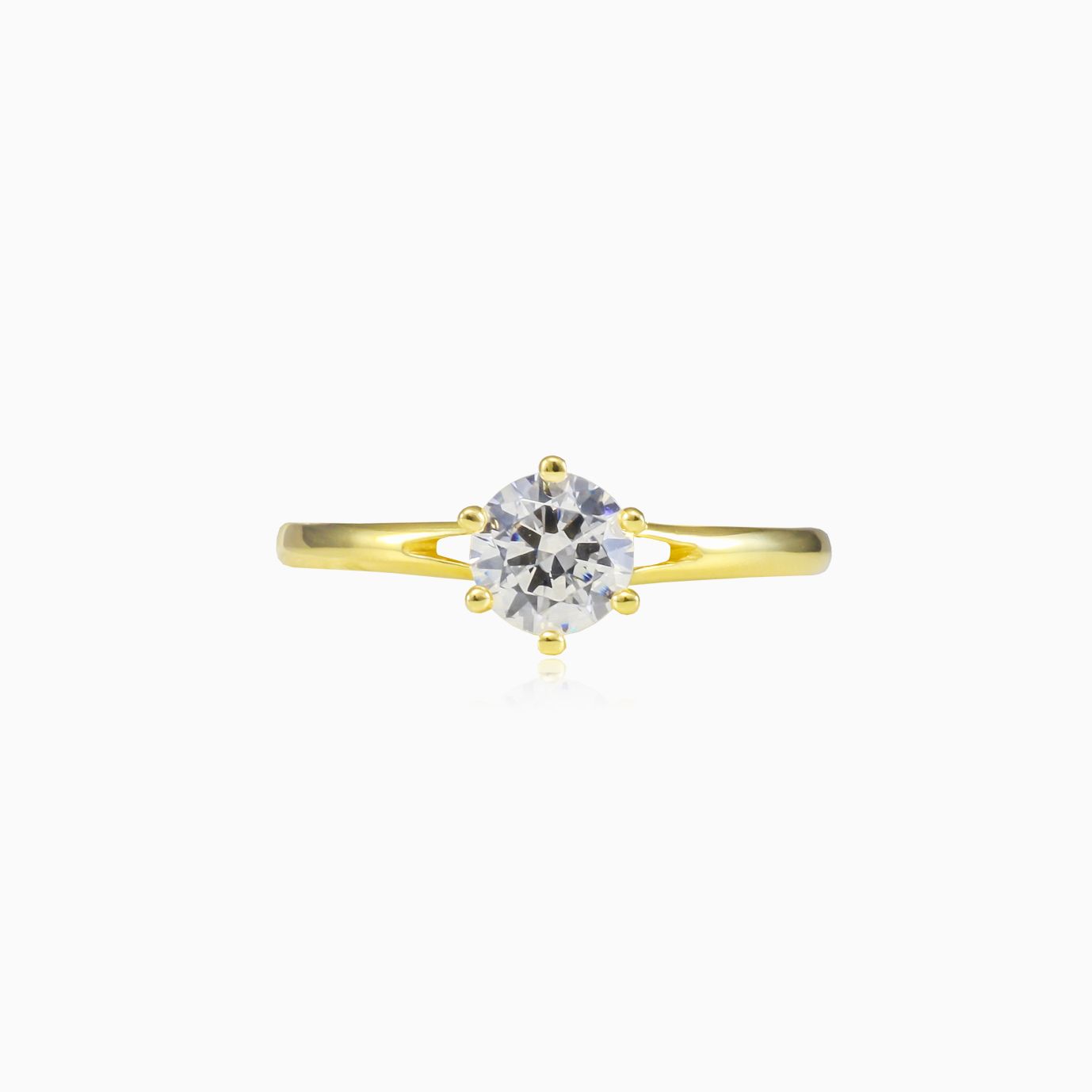 Klassischer sechskrappiger Goldring aus 14K Gelbgold mit rundem Zirkonia.