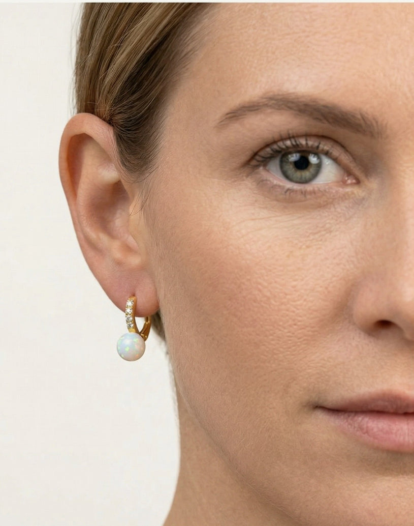 Akzent-Ohrringe aus Gold mit weißem Opal