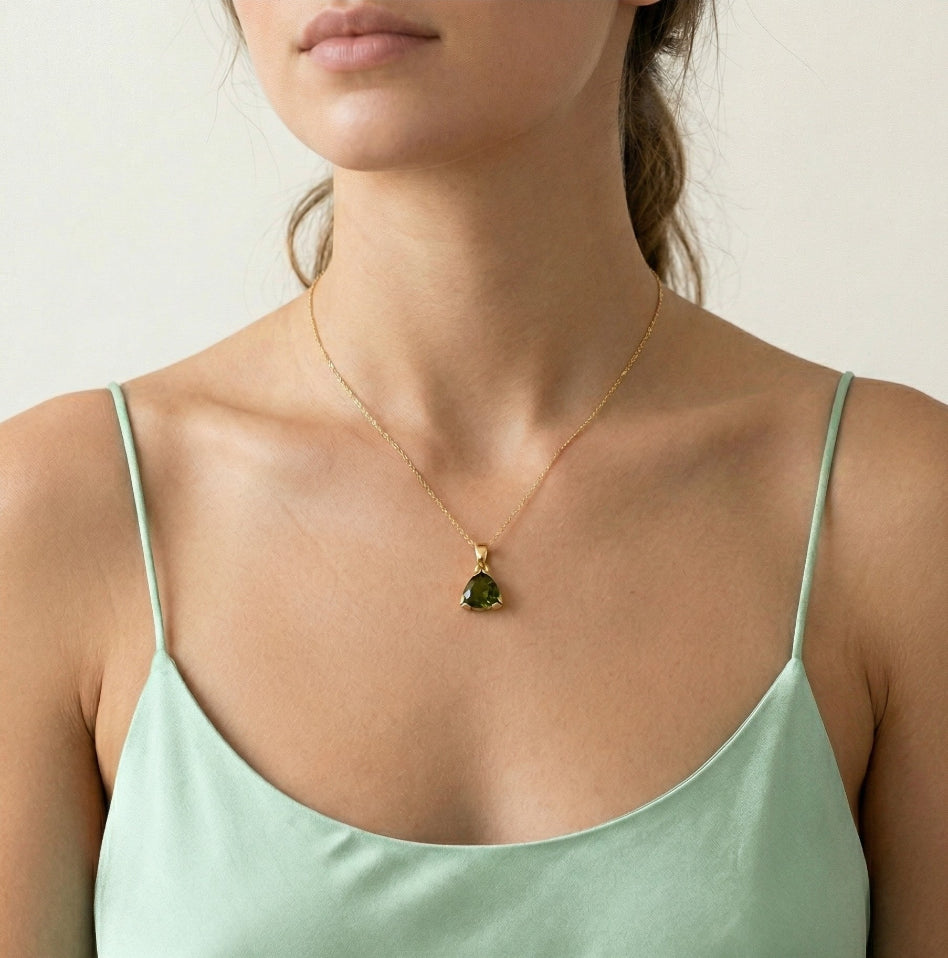 Trilliant-Moldavit-Anhänger mit V-Krappenfassung