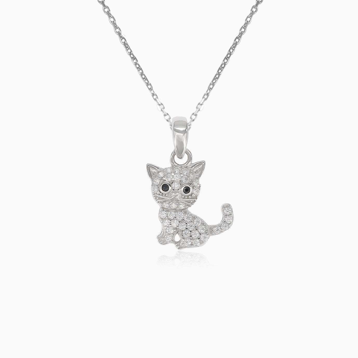 Crafted from sterling silver and adorned with sparkling cubic zirconia, this adorable kitten pendant is the perfect accessory for cat lovers everywhere.
