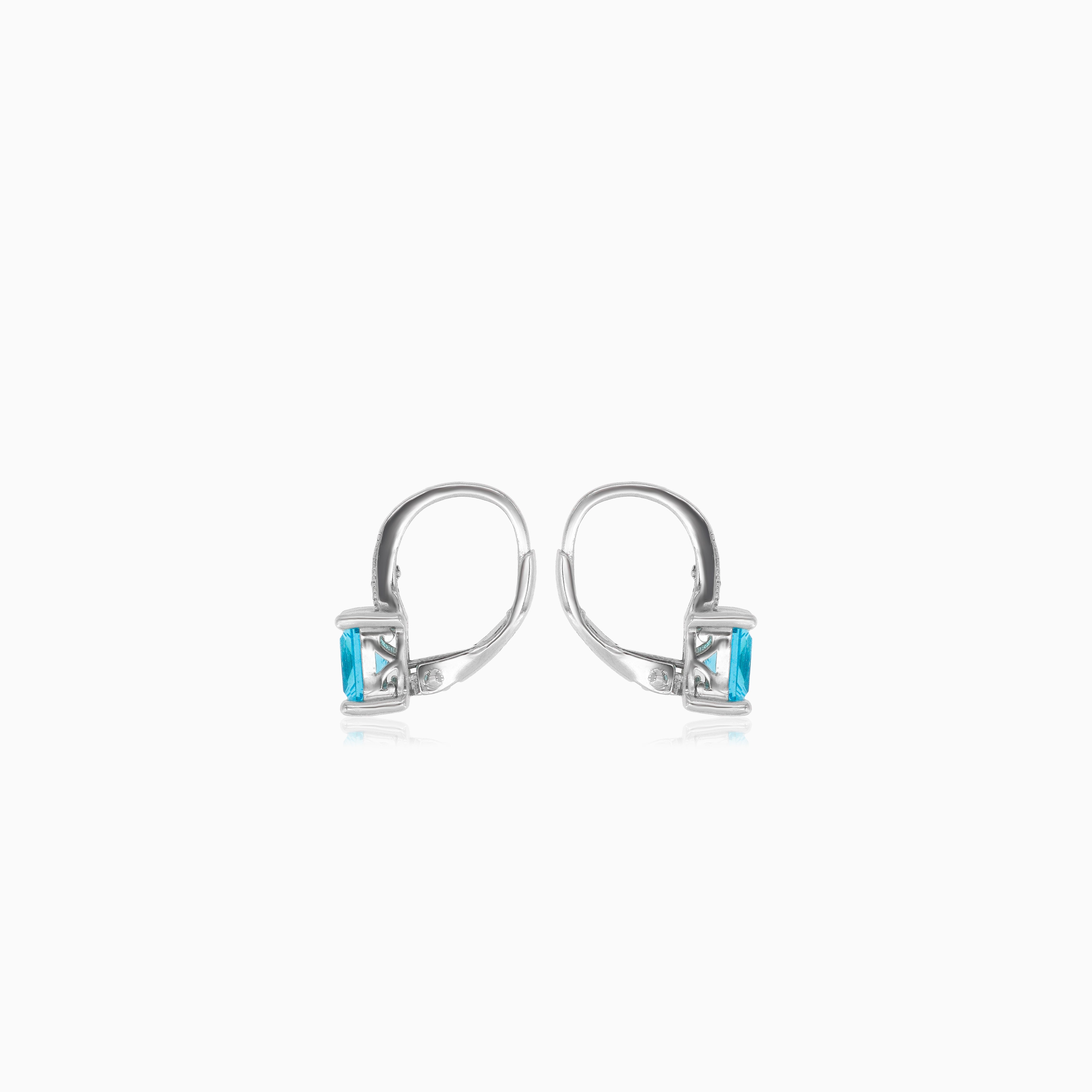 Sophisticated sterling silver drop earrings featuring a square princess-cut blue topaz secured in a prong setting. Accented with a round cubic zirconia on the hook for a touch of sparkle, these earrings boast a lever-back closure for security and comfort. A beautiful, versatile addition to any jewelry collection.