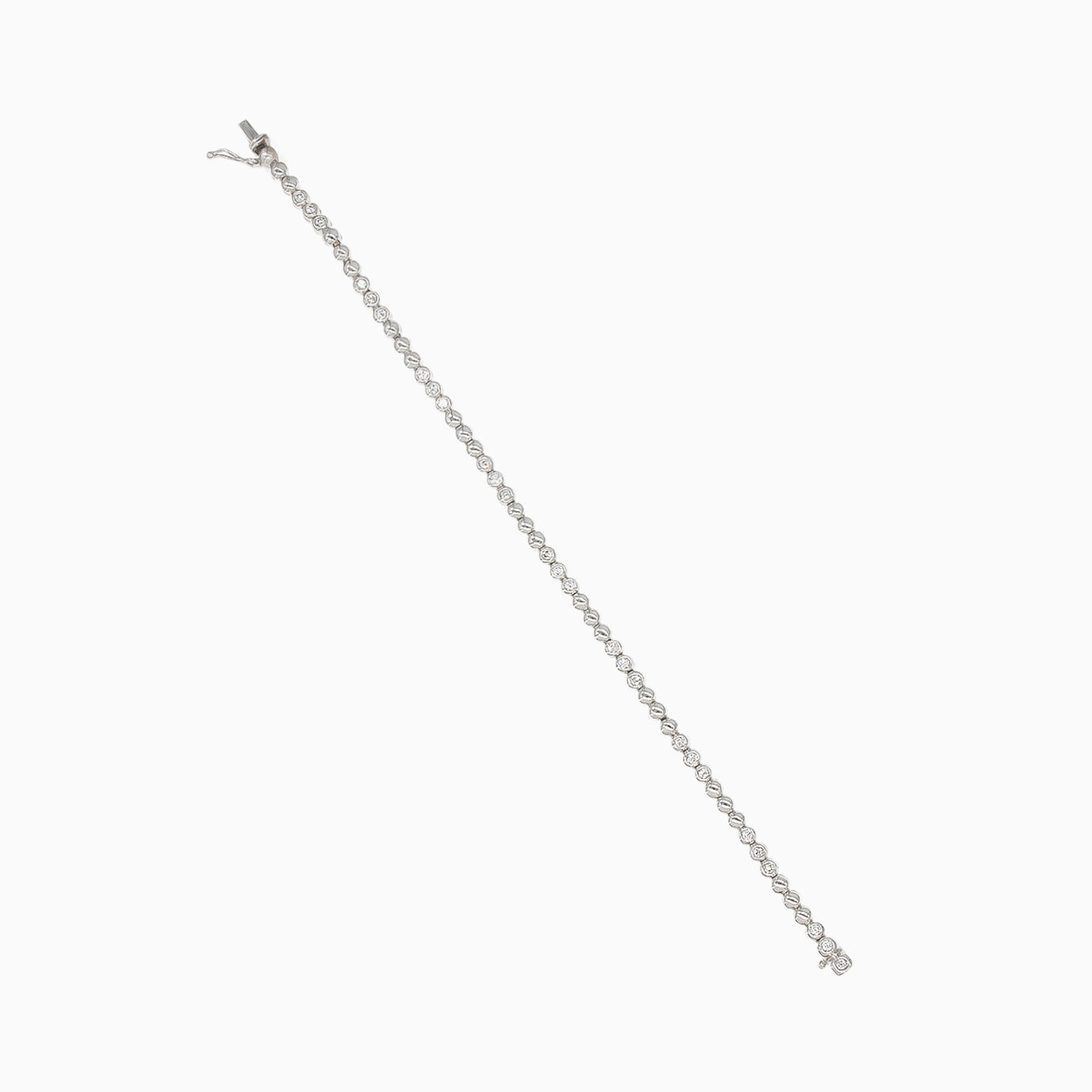 Experience luxury with this 18ct white gold tennis bracelet featuring 0.58ct VS1 GH diamonds in a bezel setting. Secured with an open box clasp.
