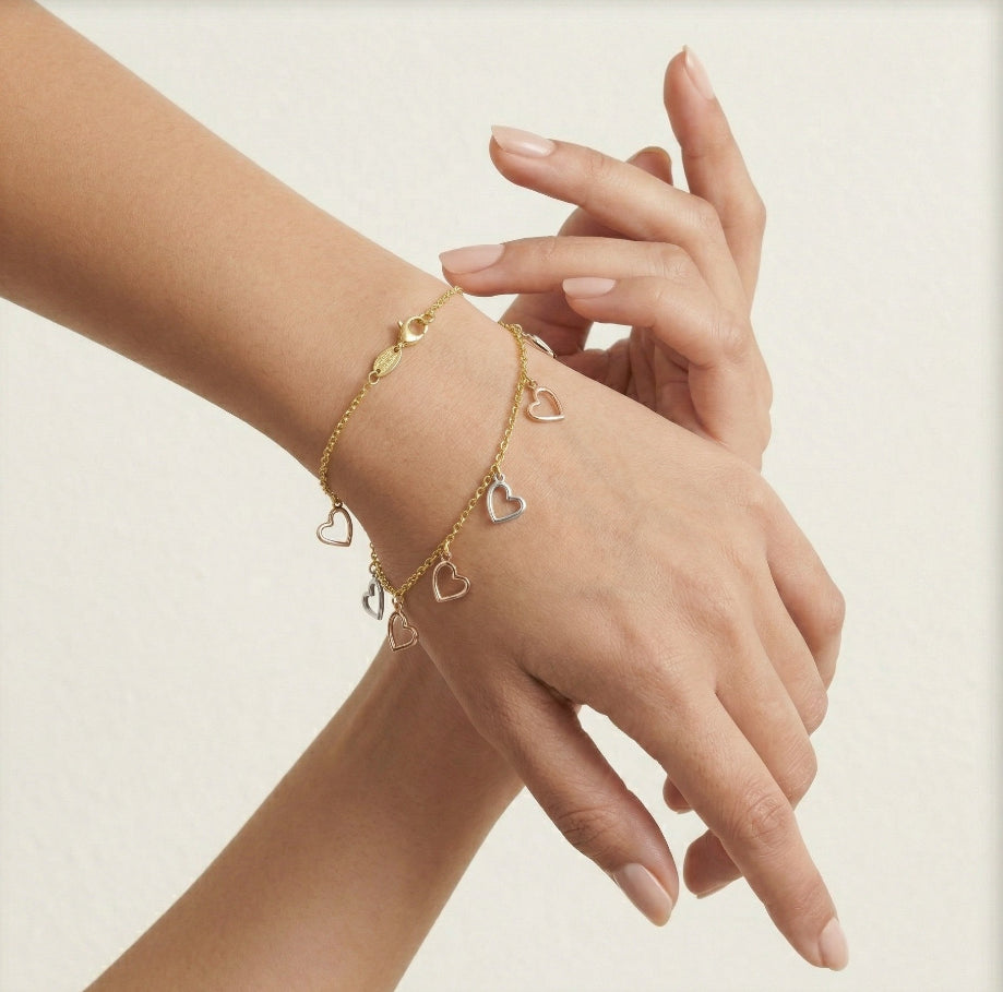 Adorn your wrist with love - a heart chain bracelet crafted from 14ct rose and white gold. The bracelet features a secure lobster clasp closure for added comfort and style.