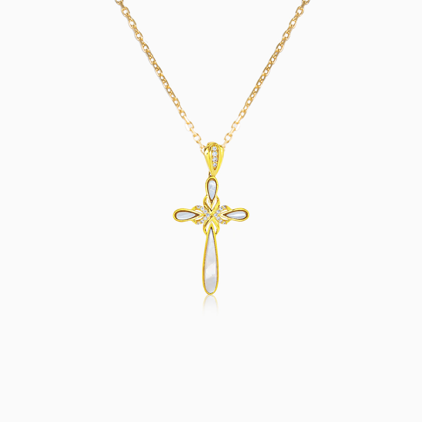 Gold cross with mother of pearl and zircons