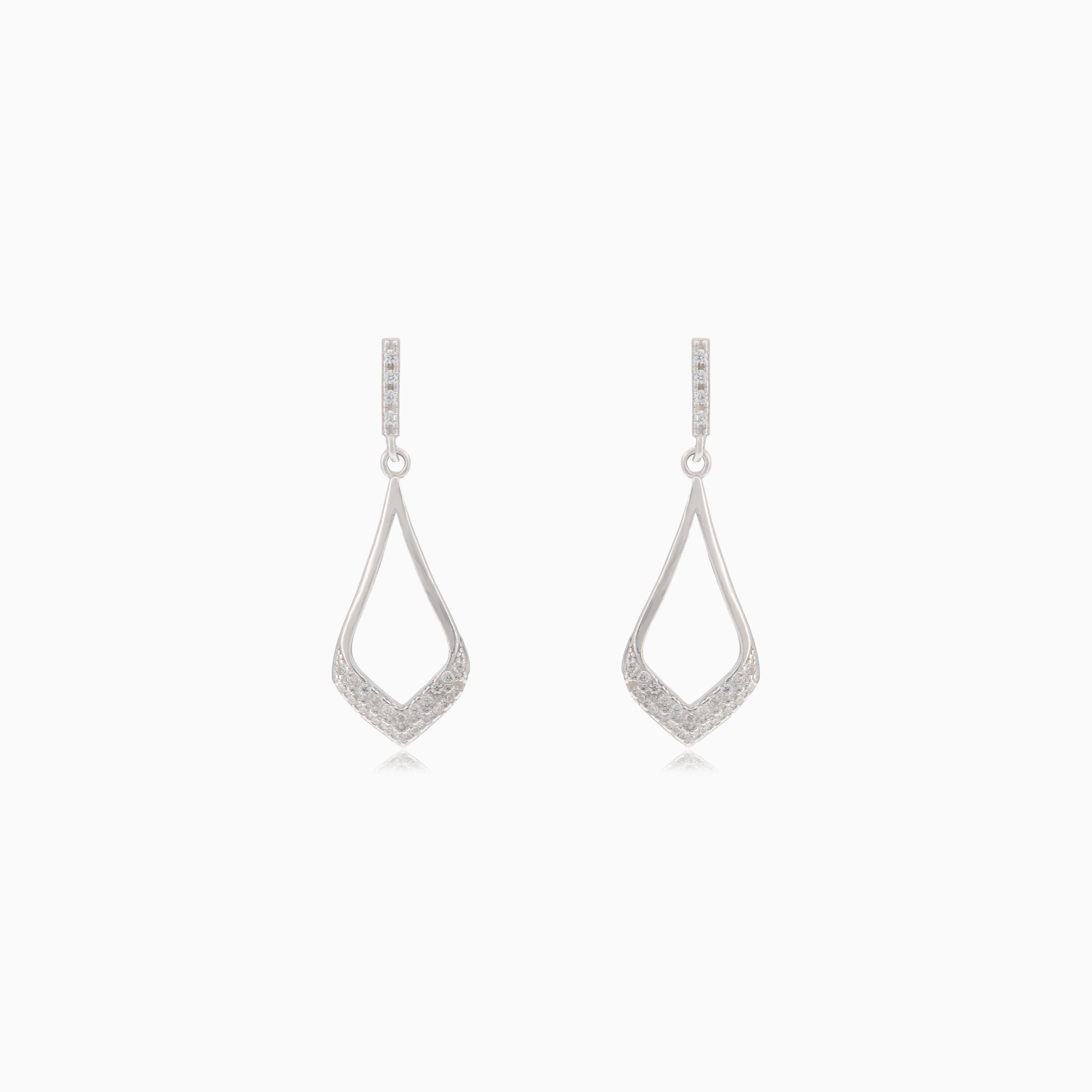 Add a touch of sparkle to your ensemble with these elegant silver dangle stud earrings featuring shimmering cubic zirconia stones.