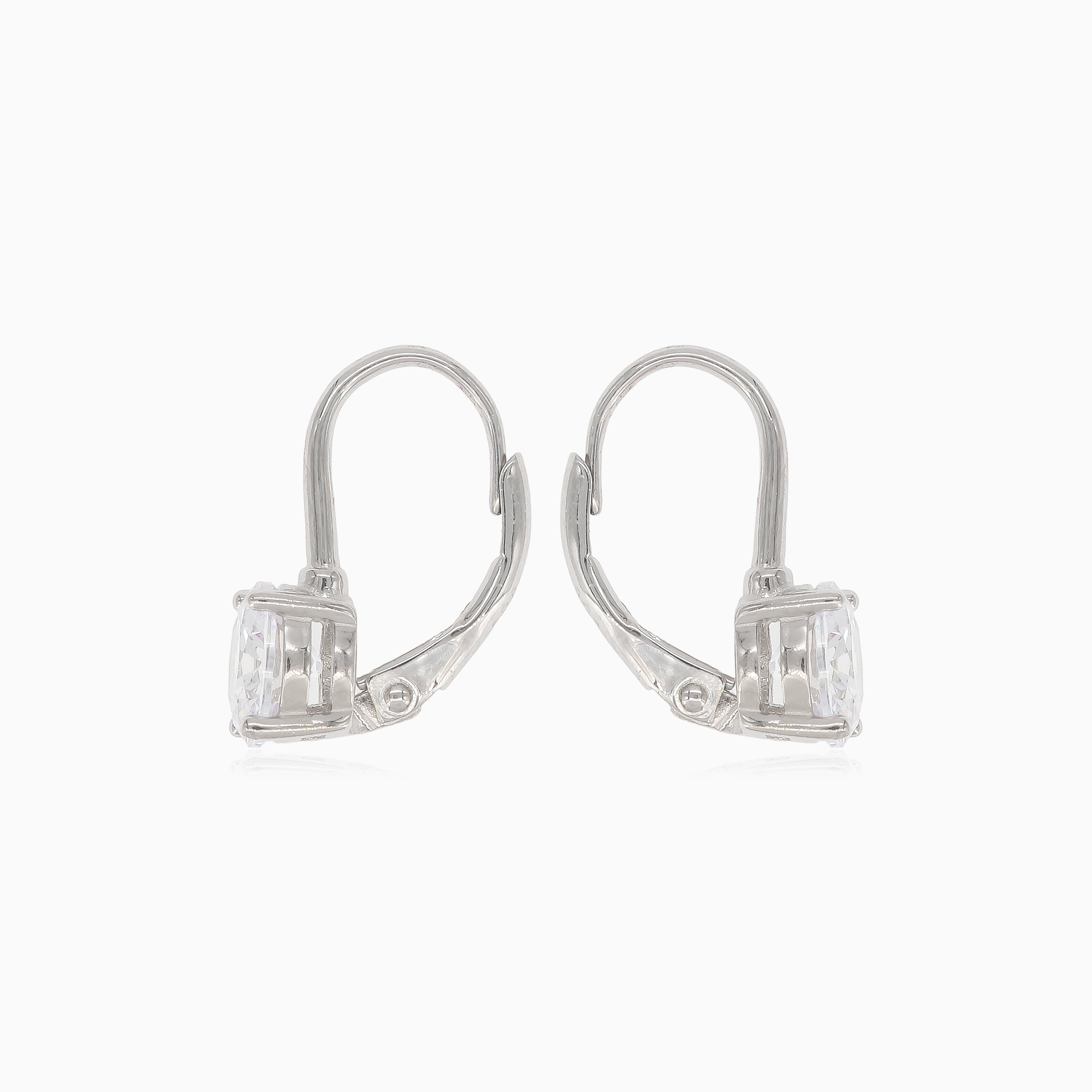 Adorn your ears with these elegant silver drop earrings featuring shimmering round cubic zirconia stones and convenient lever back closures.