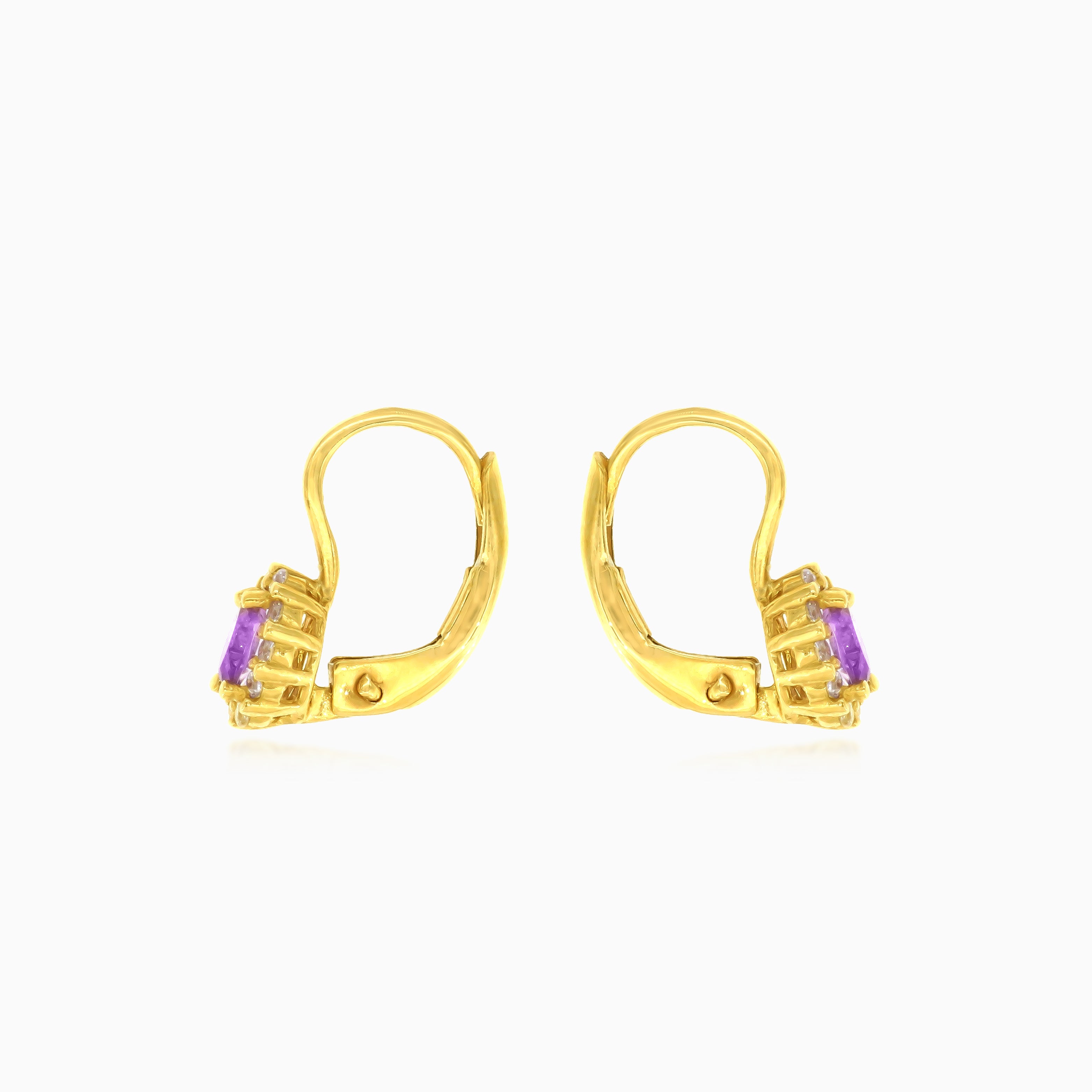 Dazzle in royal elegance with our 14kt yellow gold women's earrings, featuring a round cubic zirconia and a regal purple oval amethyst. Secured with a lever back closure for a touch of sophistication.