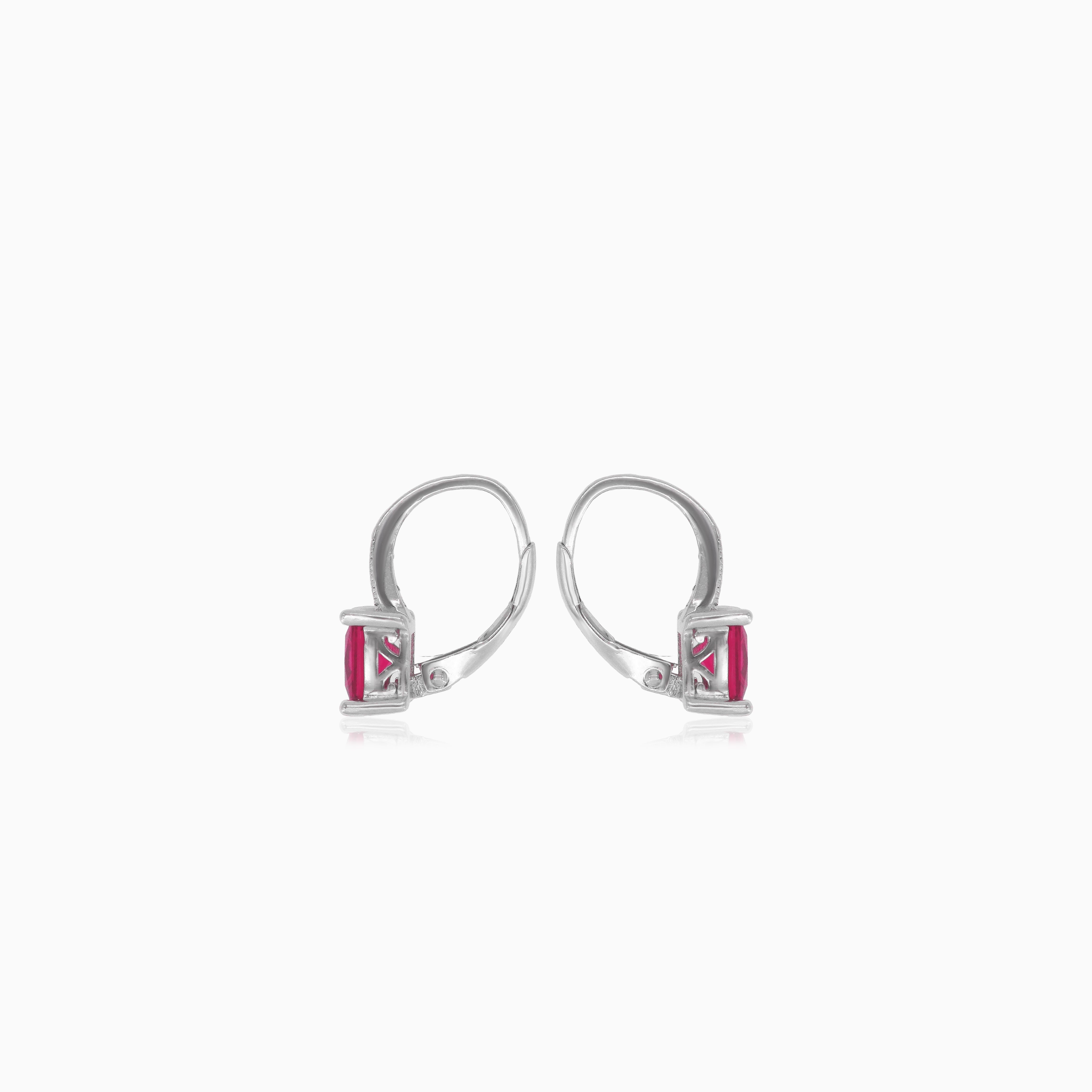 Sterling silver drop earrings with synthetic ruby