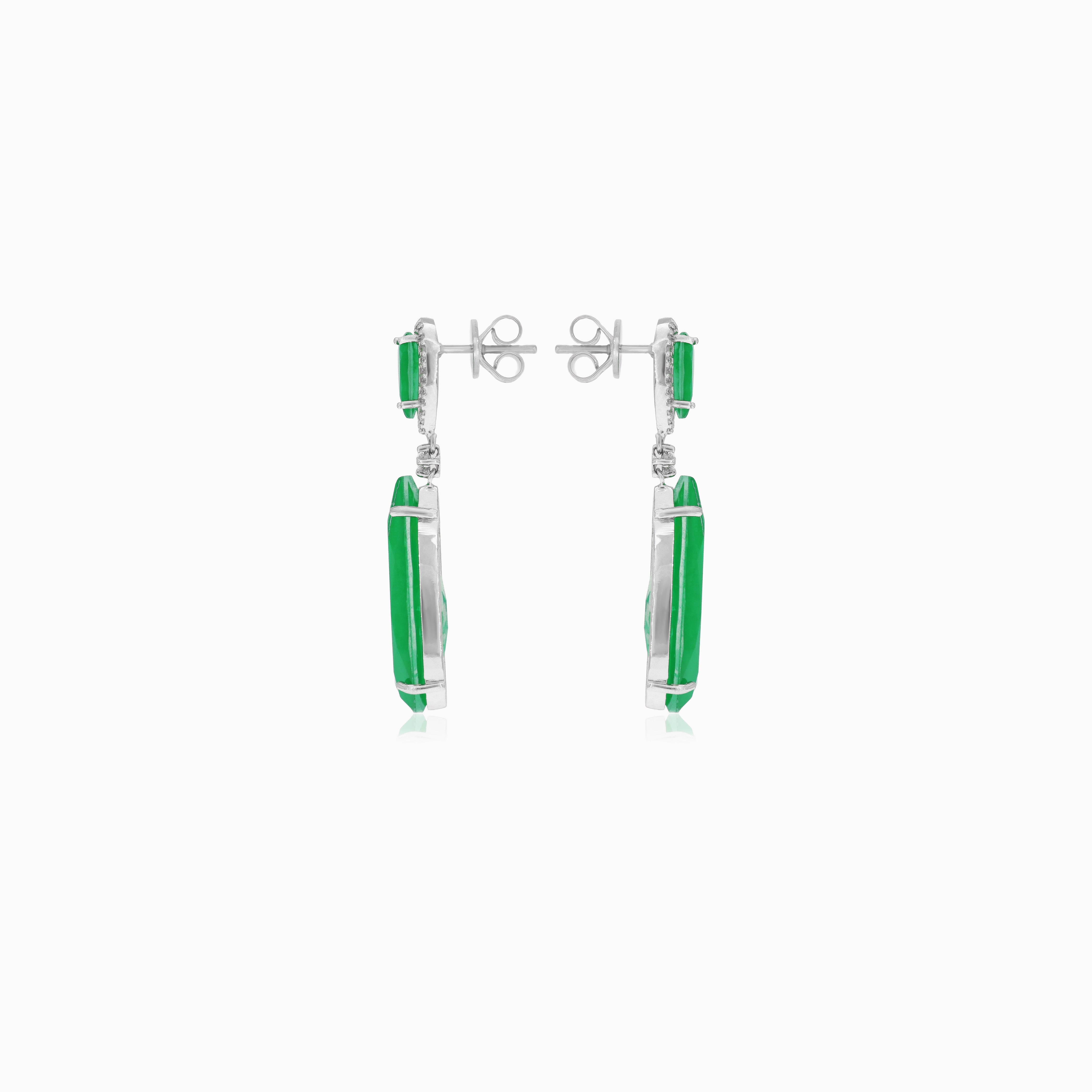 Sterling silver emerald dangling earrings