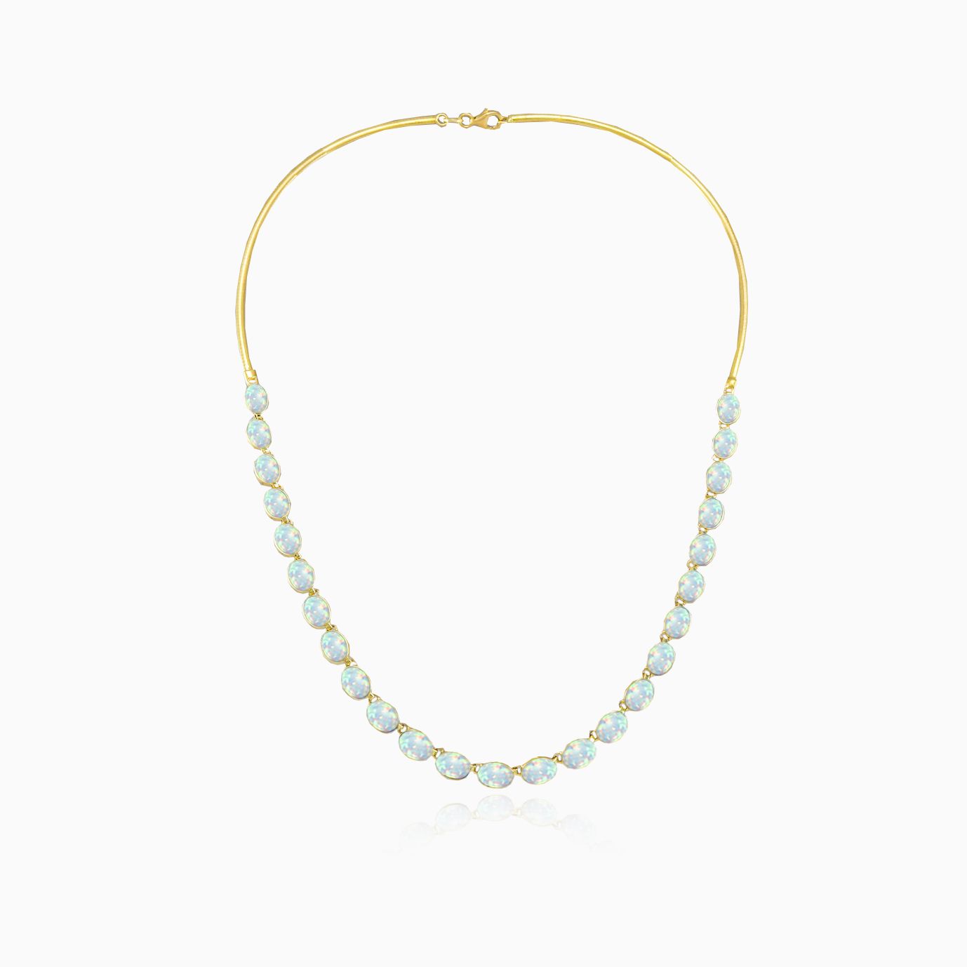 Classic necklace in 14K yellow gold, with bezel-set oval-cut white opals.