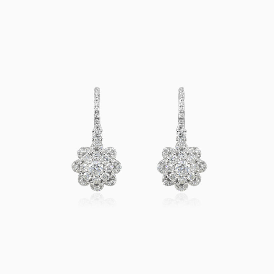 Mesmerizing flower earrings handcrafted in 14K white gold decorated with 84 brilliant-cut diamonds.