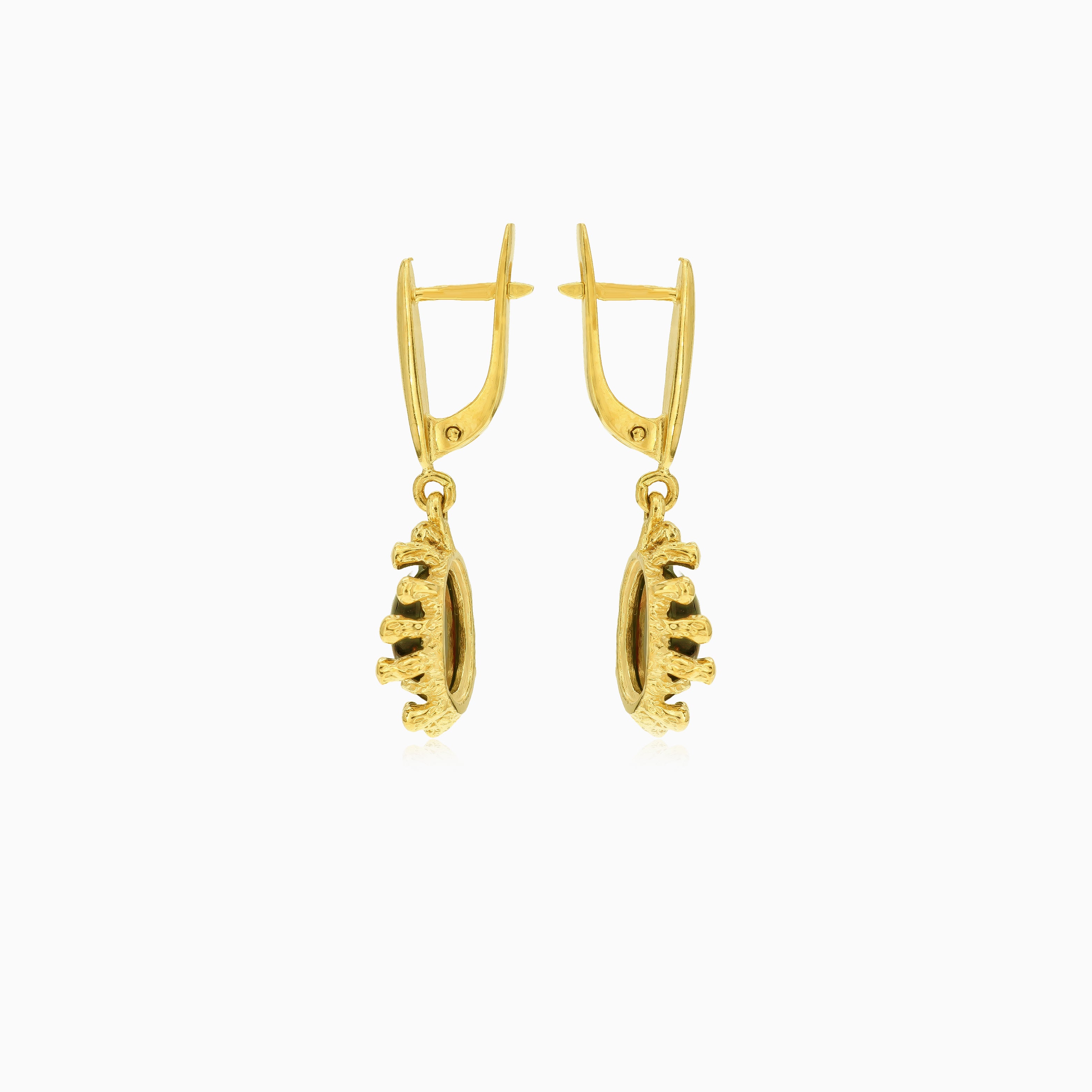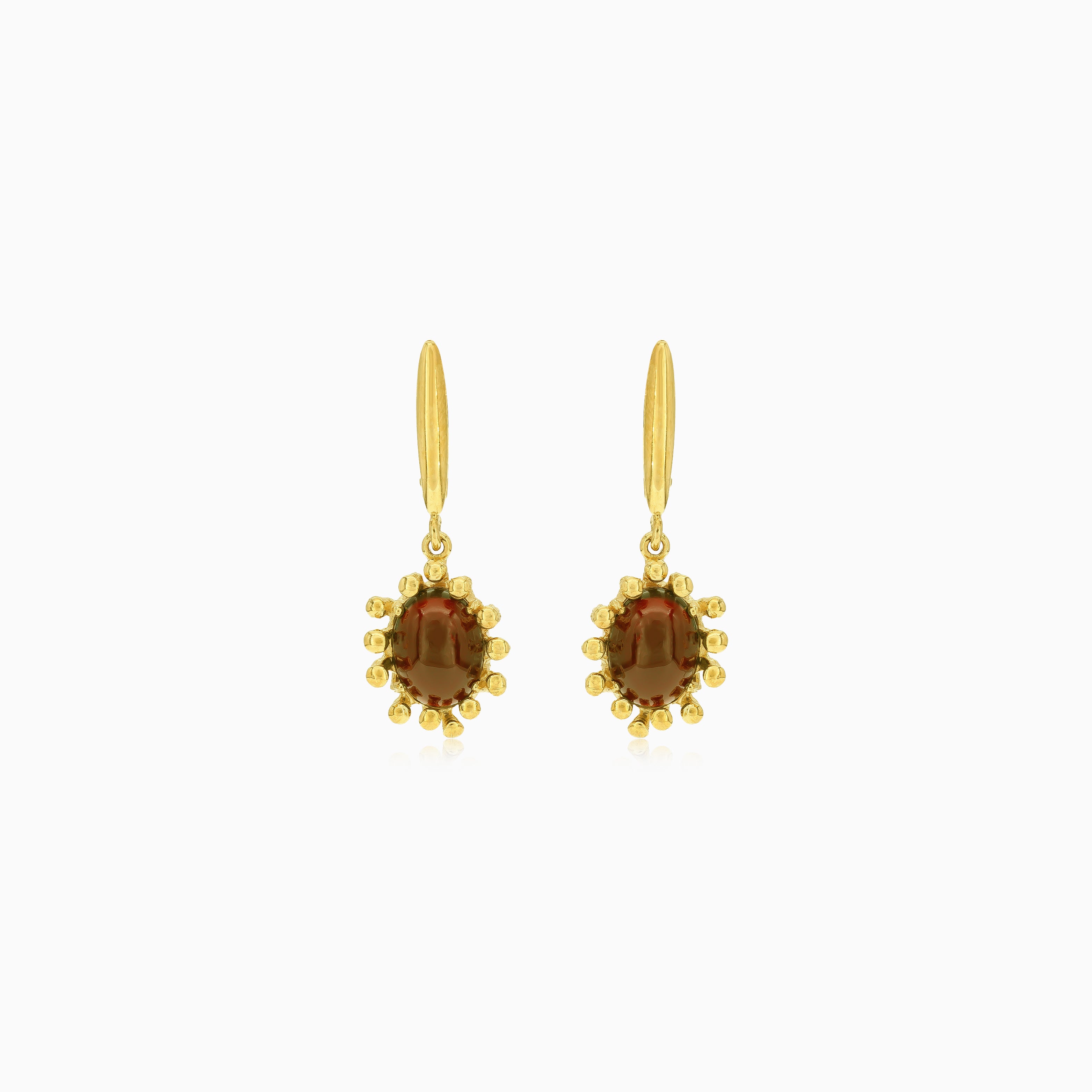 Adorn yourself with these exquisite 14kt yellow gold dangling earrings featuring a garnet stone in an elegant 4 prong setting. The earrings are designed with a secure latch back closure, adding a touch of sophistication to any ensemble.