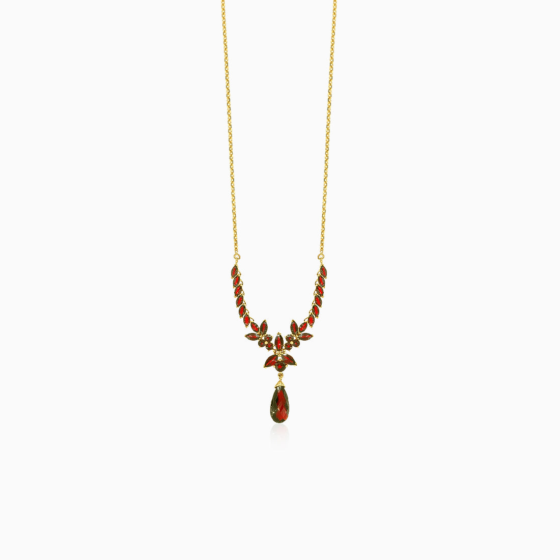 Elevate your style with this stunning women's necklace featuring marquise-cut garnets and briolette pear-cut drop. Crafted in luxurious 14kt yellow gold with a secure prong setting and lobster clasp closure, it adds a touch of sophistication to any ensemble.