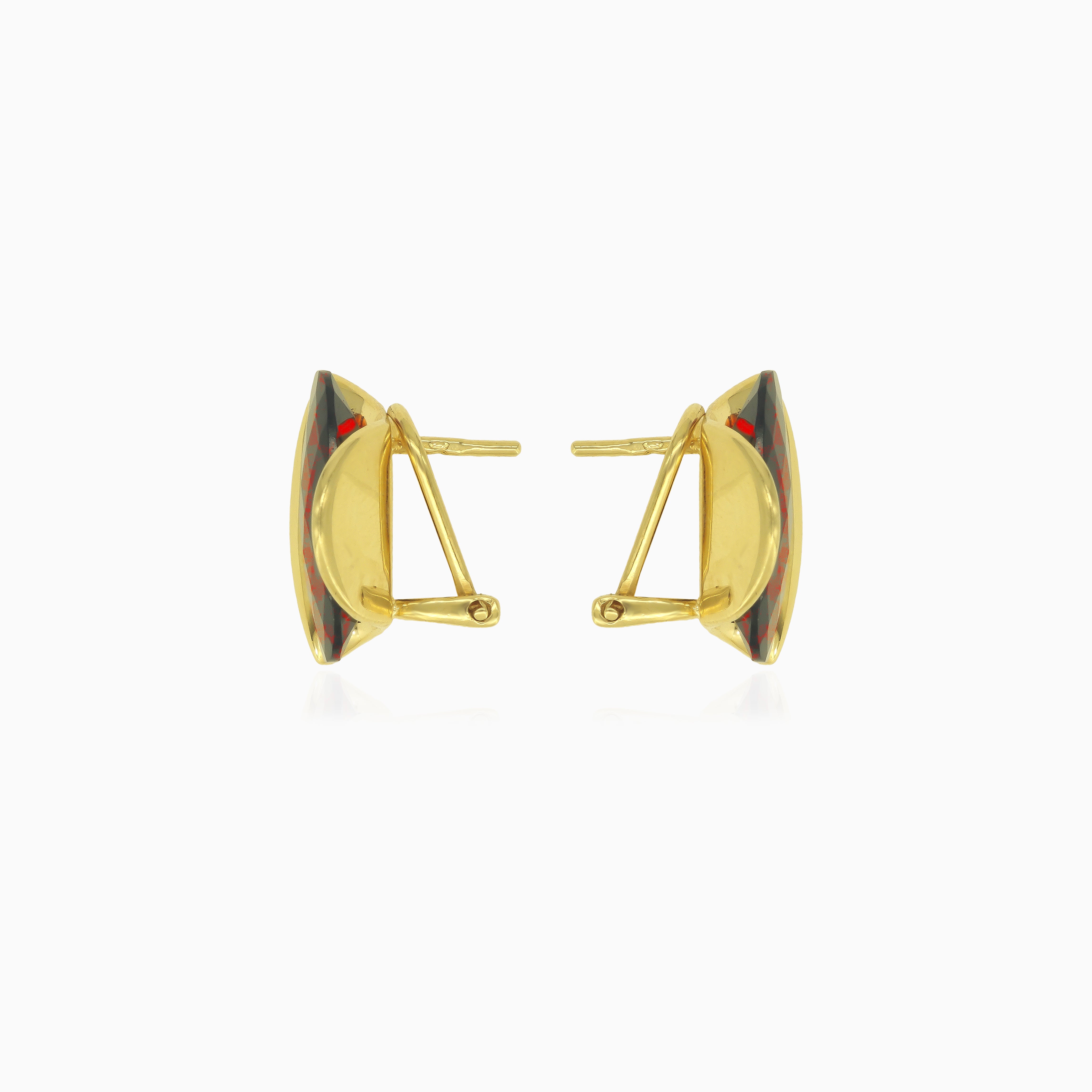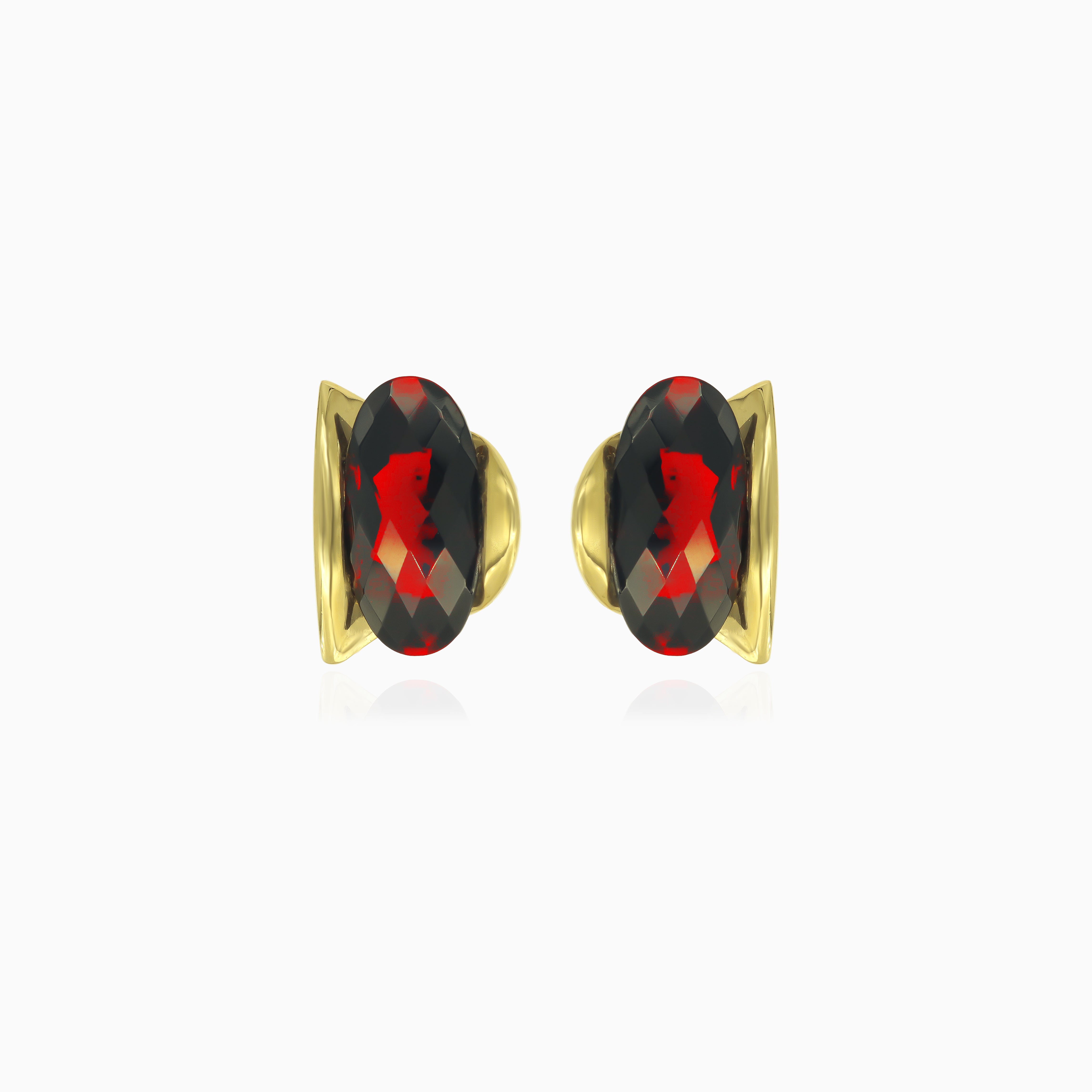 Elevate your style with this stylish ring featuring oval fine step-cut garnet in a 14kt yellow gold tension setting and secured by omega back closure, making it a statement of elegance and sophistication.